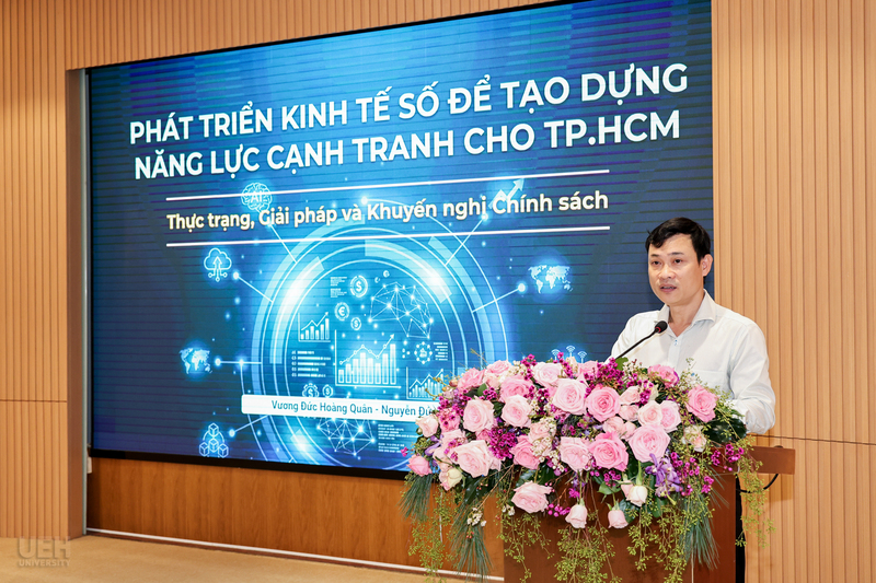 Ngày 02/12/2025, Đại học Kinh tế Thành phố Hồ Chí Minh (UEH) phối hợp cùng Đại học Kinh tế Quốc dân (NEU) tổ chức chuỗi Hội thảo Khoa học Quốc gia, hướng tới xây dựng diễn đàn học thuật nhằm trao đổi, thảo luận và đề xuất các kiến nghị thực tiễn nâng cao năng lực cạnh tranh của đất nước trong thời đại mới. Trong đó, hội thảo đầu tiên với chủ đề “Phát triển kinh tế số và nâng cao năng lực cạnh tranh của nền kinh tế: Kinh nghiệm quốc tế và bài học cho Việt Nam” đã ghi nhận nhiều tham luận chuyên sâu, đóng góp hàm ý chính sách thúc đẩy kinh tế số và đổi mới sáng tạo của doanh nghiệp Việt Nam trong thời kỳ chuyển đổi số mạnh mẽ.