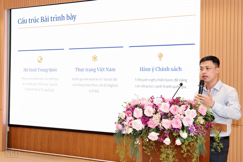 TS. Ngô Quốc Dũng - Trường Kinh tế và Quản lý Công NEU trình bày tham luận chủ đề: “Phát triển kinh tế số và nâng cao năng lực cạnh tranh của nền kinh tế: Kinh nghiệm từ Trung Quốc và hàm ý cho Việt Nam”