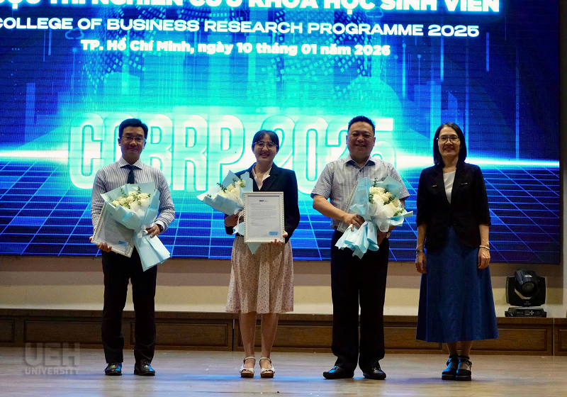 Cuộc thi Nghiên cứu khoa học sinh viên Trường Kinh doanh (COBRP) do Ban Cán sự Đoàn trường Kinh doanh tổ chức, không chỉ dừng lại là một sân chơi học thuật mà còn mang sứ mệnh bồi dưỡng năng lực nghiên cứu, góp phần nâng cao chất lượng đào tạo. Những đề tài được vinh danh tại COBRP 2025 hứa hẹn sẽ là nguồn ứng viên sáng giá đại diện UEH tiếp tục chinh phục các giải thưởng Nghiên cứu khoa học cấp Thành phố, cấp Bộ và Quốc gia trong thời gian tới.