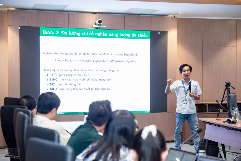 Tiếp nối, TS. Đoàn Vũ Nguyên nhấn mạnh điểm mới của nghiên cứu là việc đo lường nghèo năng lượng tại Việt Nam theo cách tiếp cận đa chiều (MEPI) dựa trên dữ liệu VHLSS giai đoạn 2004–2020. Chỉ số này được tổng hợp từ 4 chỉ số thành phần gồm: TPR – gánh nặng chi tiêu điện (chiếm trên 10% chi phí sinh hoạt); LIHC – thu nhập thấp nhưng chi phí năng lượng cao; M2 – mức tiêu dùng điện thấp (dưới 50% mức trung vị quốc gia); và MOT – khả năng tiếp cận các thiết bị điện hiện đại còn hạn chế. Thông qua hệ số CV, nghiên cứu đo lường mức độ bất bình đẳng giữa các nhóm dân cư và đi đến hai kết quả chính. Thứ nhất, nghèo năng lượng tồn tại ở các nhóm dân cư dễ bị tổn thương, tập trung tại các khu vực kém phát triển và có sự bất bình đẳng đáng kể giữa các nhóm hộ gia đình. Thứ hai, phân cấp tài khóa có tương quan với xu hướng giảm nghèo năng lượng. Từ các kết quả này, đề tài cũng thận trọng đưa ra một số khuyến nghị nhằm góp phần cải thiện tình trạng nghèo năng lượng tại Việt Nam.