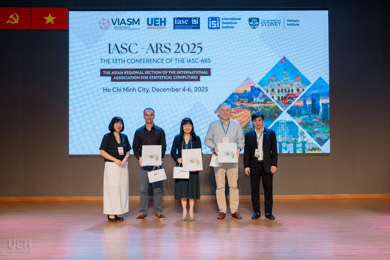 Từ ngày 03 - 06/12/2025, Đại học Kinh tế Thành phố Hồ Chí Minh (UEH) chính thức đăng cai tổ chức Hội thảo Quốc tế lần thứ 13 của Hiệp hội Quốc tế về Tính toán Thống kê – Khu vực châu Á (IASC-ARS 2025). Sự kiện do Viện Nghiên cứu Cao cấp về Toán (VIASM) và Trường Kinh tế, Luật và Quản lý nhà nước UEH (CELG – UEH) đồng tổ chức, nằm trong chuỗi hoạt động hướng đến kỷ niệm 50 năm thành lập UEH (1976-2026).