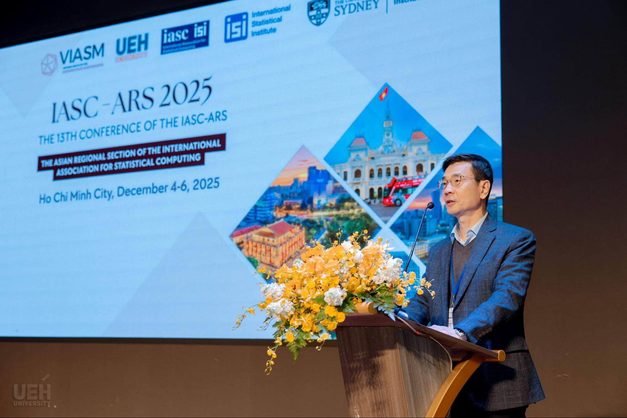 Phát biểu tại buổi lễ, PGS. TS. Bùi Quang Hùng - Phó Giám đốc phụ trách UEH khẳng định: “IASC-ARS đã trở thành một trong những diễn đàn uy tín nhất của khu vực, nơi thúc đẩy các hướng nghiên cứu mới về thống kê, phân tích dữ liệu, khoa học tính toán và AI – những lĩnh vực có vai trò trọng yếu trong bối cảnh chuyển đổi số sâu rộng hiện nay. Việc UEH đăng cai Hội thảo IASC-ARS 2025 vì thế không chỉ khẳng định uy tín học thuật của UEH trên trường quốc tế mà còn góp phần thúc đẩy hệ sinh thái nghiên cứu dữ liệu và AI tại Việt Nam. Nhà trường tin rằng những trao đổi chuyên môn, công bố khoa học và hoạt động kết nối trong khuôn khổ hội thảo sẽ tạo ra những giá trị chuyên môn thiết thực trong thời gian tới”.  Phát biểu này mang ý nghĩa thực tiễn trong việc đánh dấu 50 năm hình thành và phát triển của UEH, góp phần xây dựng đại học đa ngành và bền vững.