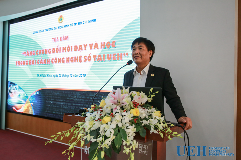 Trong bối cảnh đó, sáng ngày 03/10/2019, tại Cơ sở 59C Nguyễn Đình Chiểu, Công đoàn Trường Đại học Kinh tế TP. Hồ Chí Minh đã tổ chức Tọa đàm “Tăng cường đổi mới dạy và học trong bối cảnh Công nghệ số”. Sự kiện đã thu hút sự quan tâm của đông đảo giảng viên, cán bộ viên chức UEH với nhiều tham luận chất lượng chuyên môn cao và được biên tập thành Kỷ yếu phục vụ cho Tọa đàm.