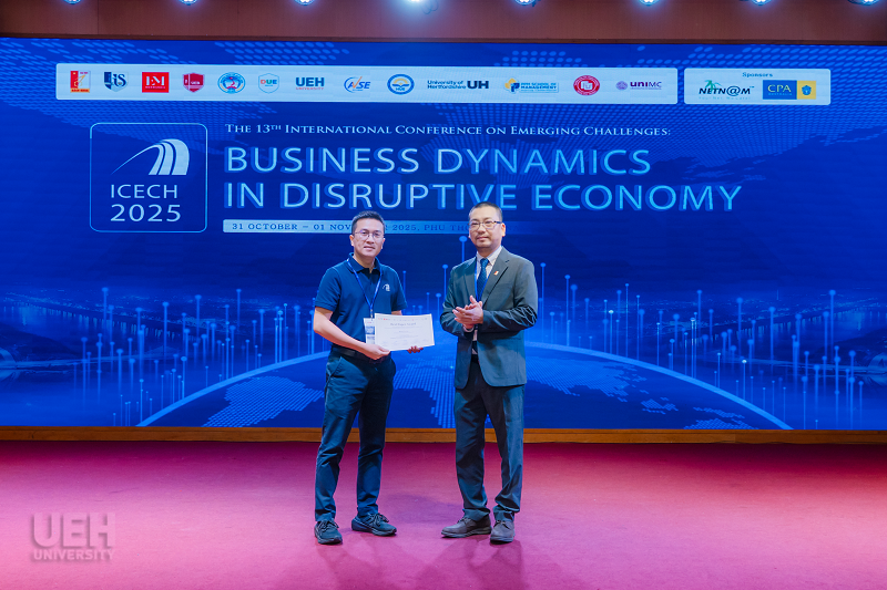 Là đơn vị đồng tổ chức Hội thảo Quốc tế ICECH 2025 với chủ đề “Động lực kinh doanh trong nền kinh tế đổi mới đột phá”, Đại học Kinh tế Thành phố Hồ Chí Minh (UEH) tiếp tục khẳng định vị thế học thuật hàng đầu trong khu vực. Sự tham gia tích cực của UEH không chỉ góp phần nâng cao chất lượng chuyên môn của hội thảo mà còn thể hiện sứ mệnh lan tỏa tri thức, thúc đẩy nghiên cứu đổi mới và kết nối quốc tế vì mục tiêu phát triển bền vững.