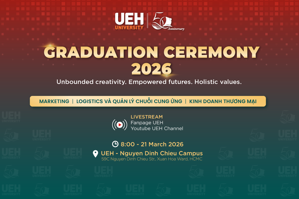 Đại học Kinh tế Thành phố Hồ Chí Minh (UEH) chính thức triển khai các chính sách học bổng dành cho sinh viên UEH học tập tại các trường đối tác quốc tế và sinh viên quốc tế đến học tập tại UEH trong năm học 2026, 2027. Các chính sách này được xây dựng trên nền tảng định hướng UEH Glo-cal Exchange, thúc đẩy môi trường học tập đa văn hóa để phát triển thế hệ Glo-cal Citizens, đồng thời hiện thực hóa chiến lược quốc tế hóa toàn diện của UEH giai đoạn 2026-2030.
