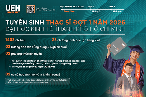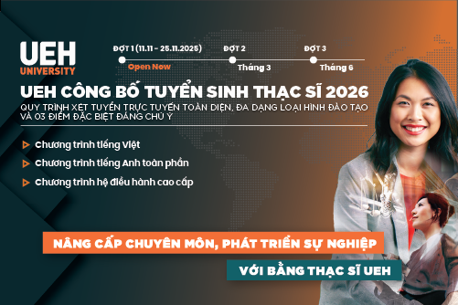 Chiều ngày 09/11/2025, tại Hội trường B1.205, Cơ sở B, Đại học Kinh tế Thành phố Hồ Chí Minh (UEH), Ban Chấp hành Đoàn TNCS Hồ Chí Minh UEH đã long trọng tổ chức Hội nghị Đại biểu Đoàn TNCS Hồ Chí Minh Đại học Kinh tế Thành phố Hồ Chí Minh nhiệm kỳ 2024 – 2027. Hội nghị được tổ chức nhằm tổng kết công tác Đoàn và phong trào thanh niên giai đoạn 8/2024 – 10/2025, đồng thời biểu quyết điều chỉnh nhiệm kỳ và bầu Đoàn đại biểu tham dự Đại hội Đoàn TNCS Hồ Chí Minh TP. Hồ Chí Minh lần thứ I, nhiệm kỳ 2025 – 2030, theo tinh thần chỉ đạo của Thành Đoàn TP. Hồ Chí Minh.