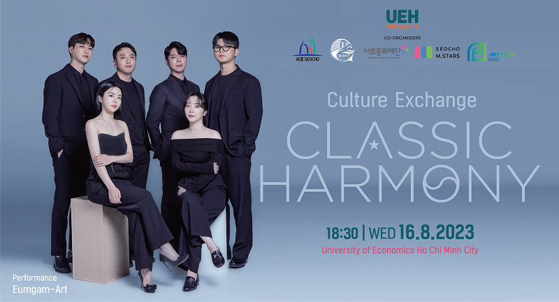 Với mong muốn mang đến một chương trình nghệ thuật đặc sắc dành cho viên chức và người học trước thềm học kỳ cuối của năm 2023, Đại học Kinh tế TP. Hồ Chí Minh (UEH) phối hợp cùng Quận Seocho Gu (Hàn Quốc) và UBND Quận 7 (TP.HCM) chính thức tổ chức buổi Biểu diễn hòa nhạc quốc tế "Culture Exchange Classic Harmony".