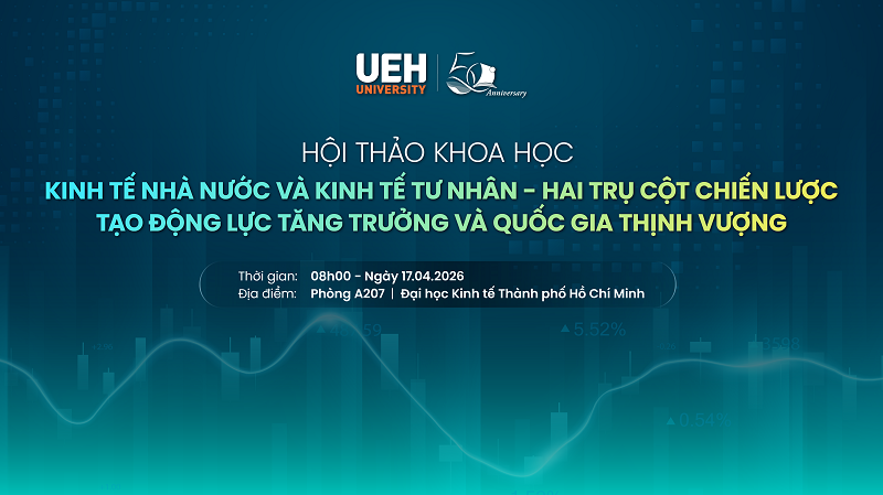 Nhằm mở ra một không gian đối thoại đa chiều, kết nối giữa nghiên cứu – chính sách – thực tiễn, Đại học Kinh tế Thành phố Hồ Chí Minh (UEH) tổ chức Hội thảo khoa học với chủ đề: “Kinh tế nhà nước và kinh tế tư nhân – Hai trụ cột chiến lược tạo động lực tăng trưởng và quốc gia thịnh vượng”.