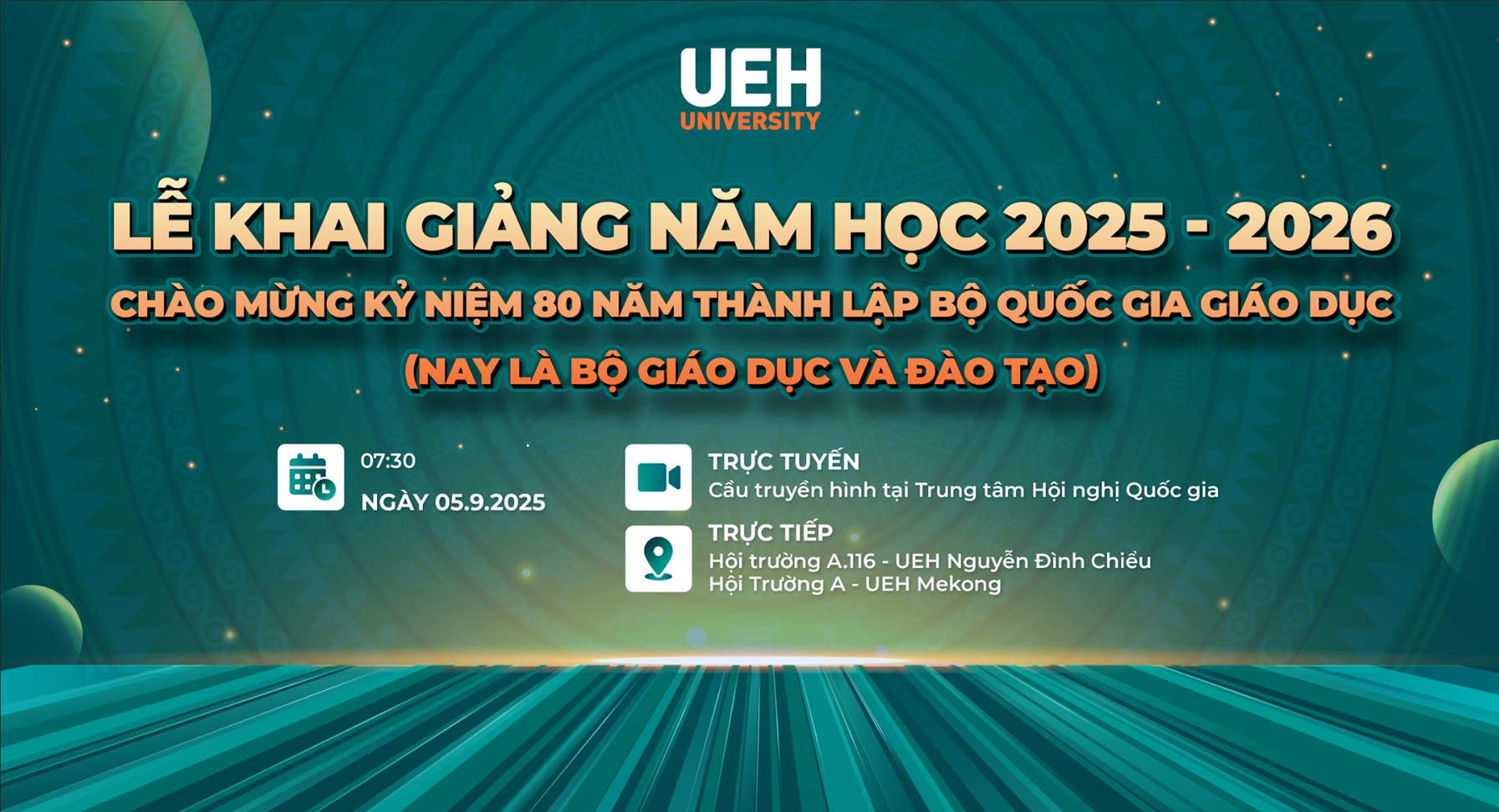 Ngày 05/9/2025, hòa chung không khí Lễ kỷ niệm 80 năm thành lập Bộ Quốc gia Giáo dục (nay là Bộ Giáo dục và Đào tạo) và Khai giảng năm học 2025 - 2026 đồng loạt tại tất cả các cơ sở giáo dục trên toàn quốc, Đại học Kinh tế Thành phố Hồ Chí Minh (UEH) sẽ tổ chức Lễ khai giảng năm học 2025-2026, đánh dấu sự khởi đầu một hành trình tri thức mới đầy sáng tạo và khát vọng.