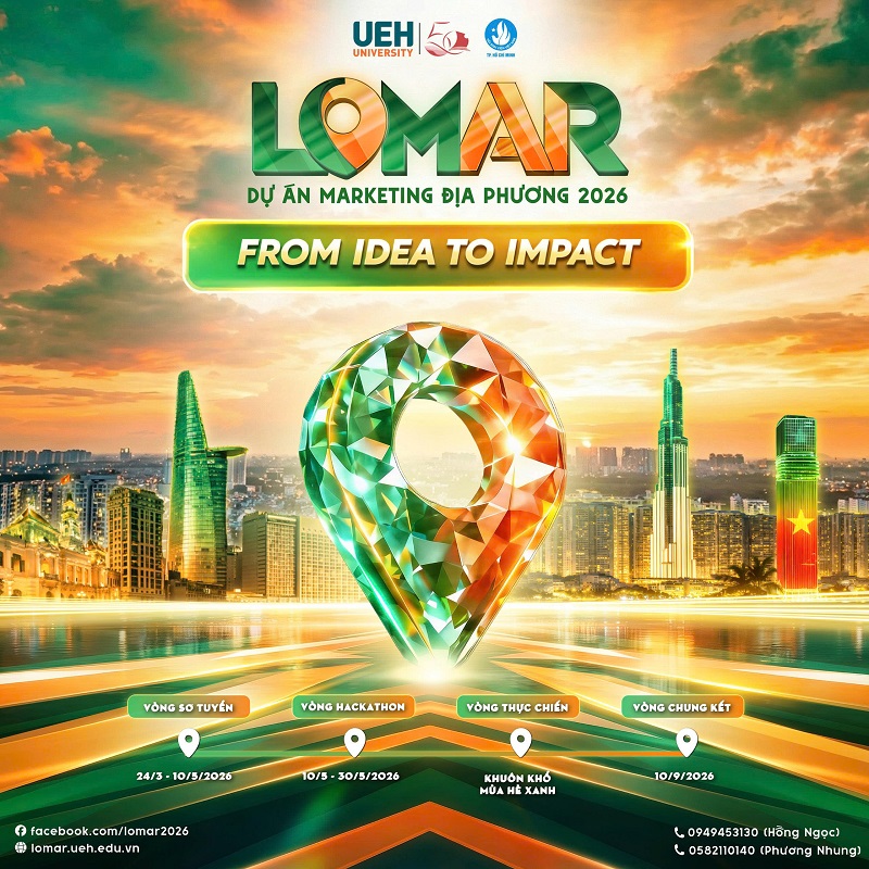 LOMAR 2026 - sân chơi dành cho sinh viên UEH nói riêng và sinh viên trên địa bàn TP. Hồ Chí Minh nói chung đã chính thức khởi động. Chương trình là nơi các ý tưởng marketing được phát triển thành dự án thực tế, gắn với kiến thức chuyên môn, tinh thần phụng sự xã hội và định hướng phát triển bền vững tại địa phương.