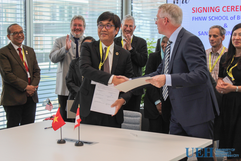 Phần ký kết MOU giữa UEH và Trường Kinh doanh thuộc Đại học Khoa học ứng dụng Tây Bắc Thụy sĩ