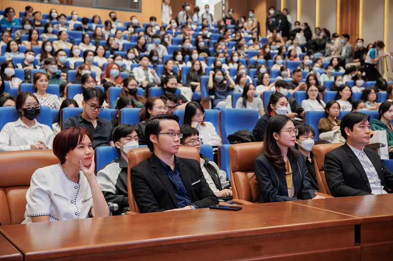Trong suốt chương trình, Chị Trần Thu Hằng - Phó Tổng Giám đốc, Quản trị Nguồn Nhân lực đã có những chia sẻ vô cùng bổ ích về lộ trình đào tạo cũng như những lợi thế của sinh viên sau khi tham gia chương trình. Các bạn không chỉ có cơ hội nhận được những học bổng có giá trị mà còn được tham gia vào môi trường kinh doanh quốc tế để phát triển năng lực thực sự. Ngoài ra, với kinh nghiệm nhiều năm làm việc tại doanh nghiệp đa quốc gia cùng với sự gần gũi của mình Chị Hằng đã truyền động lực cho không ít các bạn trẻ tại hội trường nguồn năng lượng tích cực và giúp cho các bạn hình thành một tư duy mở để nhanh chóng hòa nhập và thích nghi với môi trường làm việc sau khi ra trường.