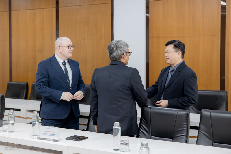 Về phía Đại học Huddersfield, buổi lễ vinh dự đón tiếp GS. Monty Adkins - Phó Giám đốc phụ trách Nghiên cứu, Đổi mới và Trao đổi tri thức kiêm Trưởng Ban Sau Đại học và GS. Abhijit Sharma - Giám đốc Chương trình Đào tạo Sau đại học.
