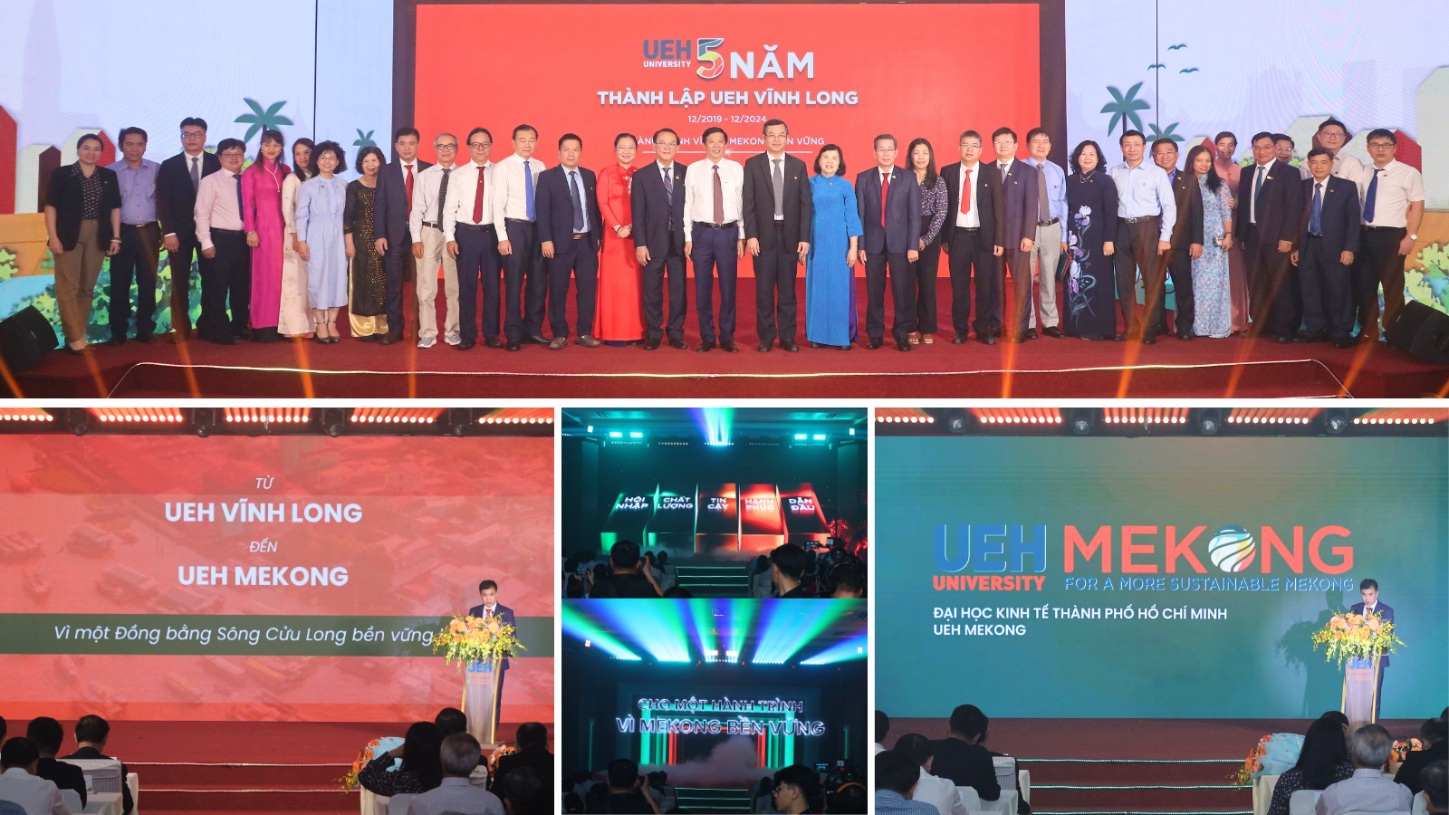 Ngày 03/01/2025, UEH Mekong long trọng tổ chức Lễ kỷ niệm 05 năm thành lập (04/12/2019 - 04/12/2024) với chủ đề “For a more sustainable Mekong - Vì một Đồng bằng Sông Cửu Long và tiểu vùng sông Mekong bền vững”. Sự kiện là dấu mốc quan trọng, khẳng định bước chuyển mình về tầm vóc, định vị và sứ mệnh UEH Mekong - từ UEH Vĩnh Long đến UEH Mekong.