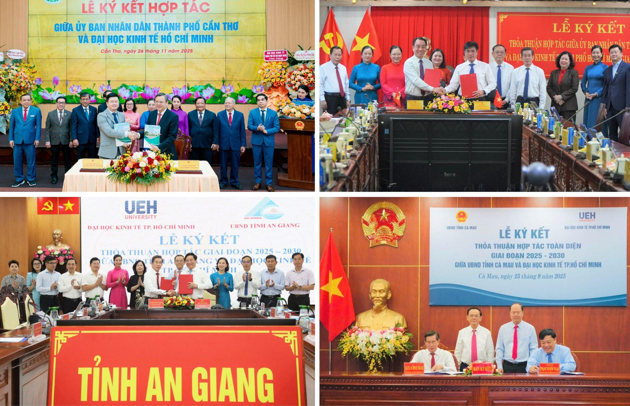 Lễ Ký kết MOU giữa UEH và các tỉnh/Thành phố khu vực ĐBSCL, gồm: tỉnh Vĩnh Long, Thành phố Cần Thơ, tỉnh An Giang, tỉnh Cà Mau
