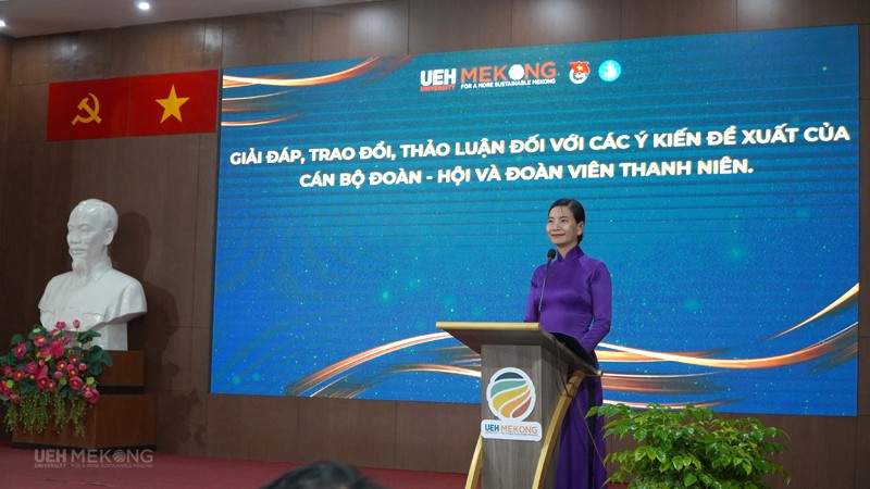 TS. Nguyễn Thị Thý Liễu - Bí thư Đảng ủy bộ phận, Giám đốc UEH Mekong giải đáp các ý kiến của cán bộ Đoàn - Hội, đoàn viên thanh niên