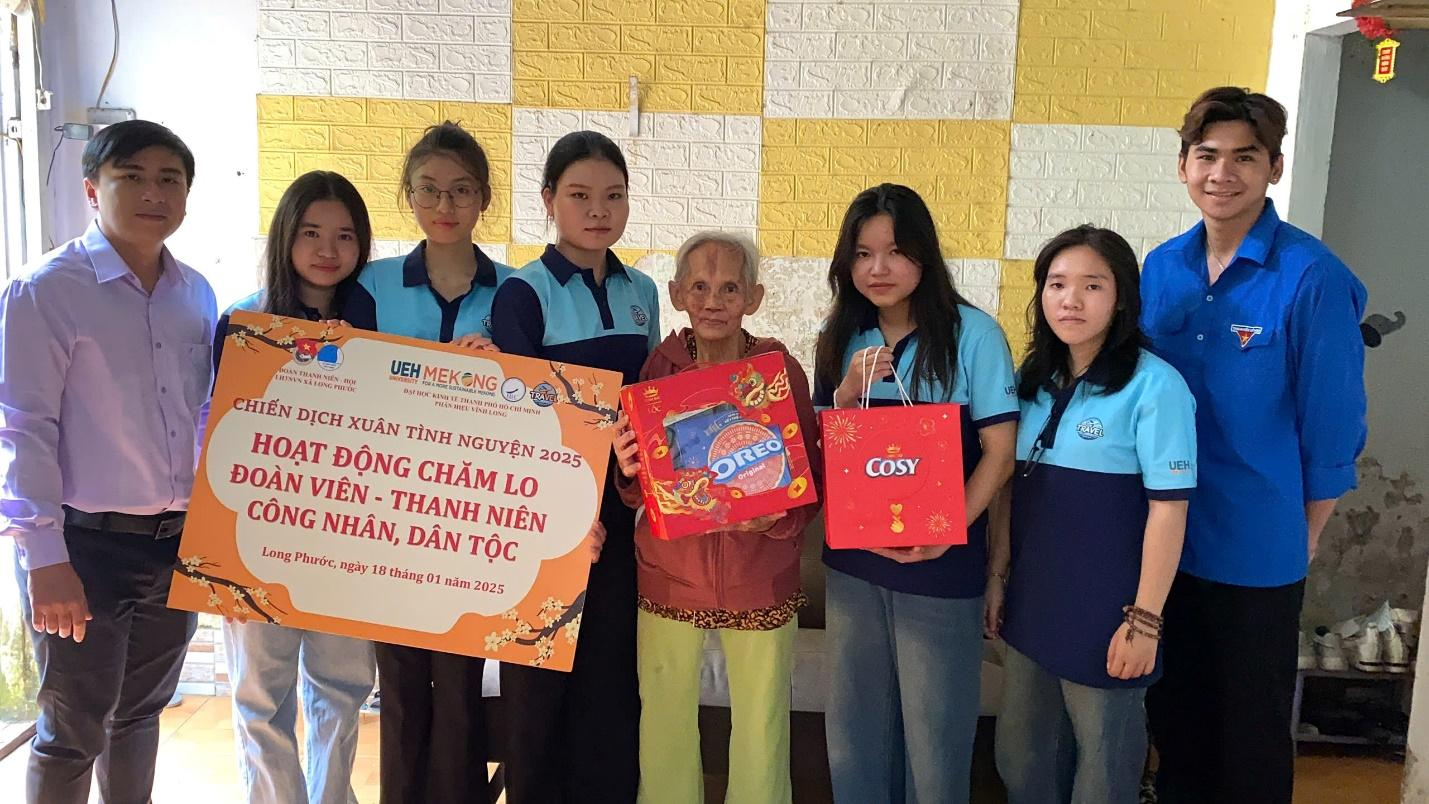 Nhằm phát huy vai trò của tổ chức Đoàn và tinh thần xung kích của tuổi trẻ trong phong trào “Uống nước nhớ nguồn”, “Đền ơn đáp nghĩa” chăm lo cho các gia đình chính sách, người có công với cách mạng; giúp đỡ và động viên đoàn viên, thanh niên công nhân, hộ gia đình, trẻ em có hoàn cảnh khó khăn được vui xuân, đón Tết cổ truyền của dân tộc; Đoàn Thanh niên - Hội Sinh viên Phân hiệu Đại học Kinh tế Thành phố Hồ Chí Minh (UEH Mekong) và các Câu lạc bộ (CLB) trực thuộc Đoàn UEH Mekong tổ chức Chương trình “Tết tri ân - Xuân tình nguyện” với tổng kinh phí thực hiện hơn 52.700.000 đồng. Toàn bộ nguồn kinh phí thực hiện hoạt động này được Đoàn - Hội vận động thông qua phong trào “Nuôi heo đất” của các chi đoàn và nguồn vận động xã hội hóa từ các Câu lạc bộ trực thuộc Đoàn UEH Mekong