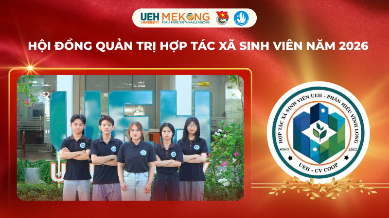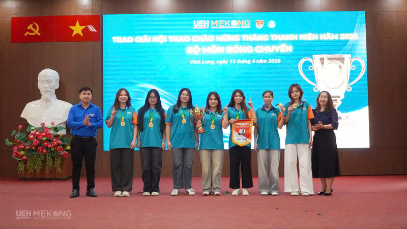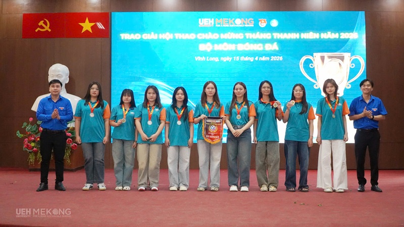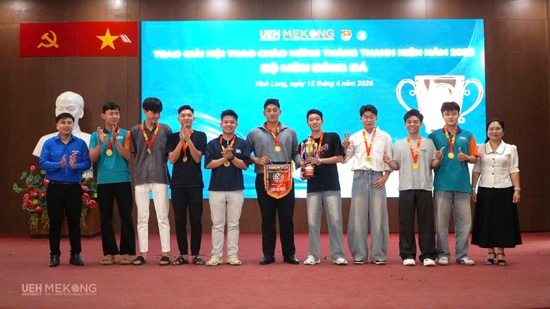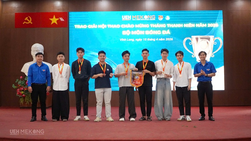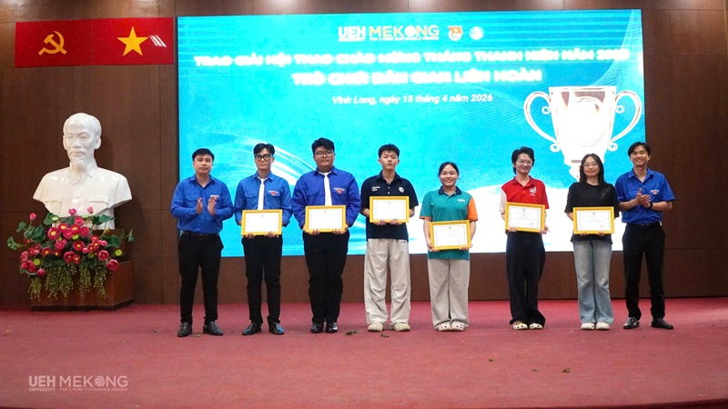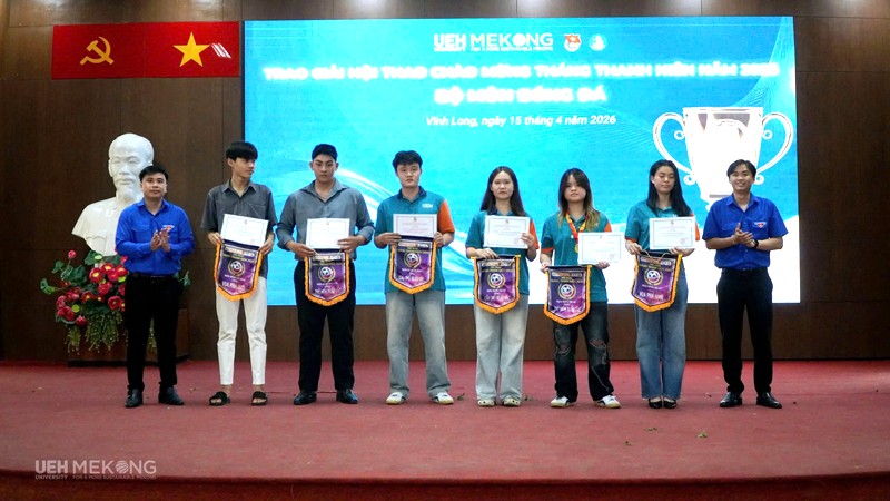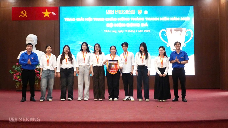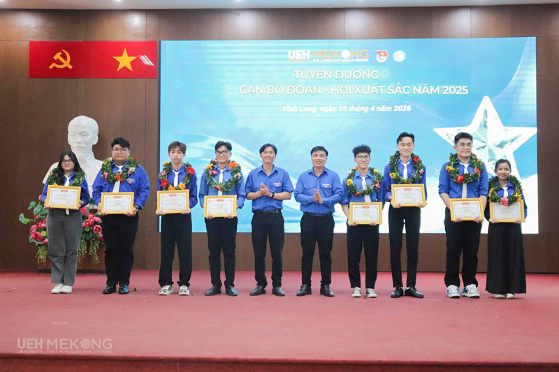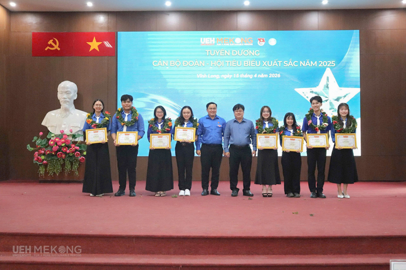Ngày 15/4/2026, Đoàn - Hội UEH Mekong tổ chức Lễ tổng kết hoạt động Tháng Thanh niên 2026 và tuyên dương tập thể Chi đoàn - Chi hội, cán bộ Đoàn - Hội xuất sắc năm 2025; giới thiệu nhân sự Ban chuyên môn thuộc Đoàn, Ban chủ nhiệm CLB và Hội đồng Quản trị Hợp tác xã Sinh viên năm 2026.