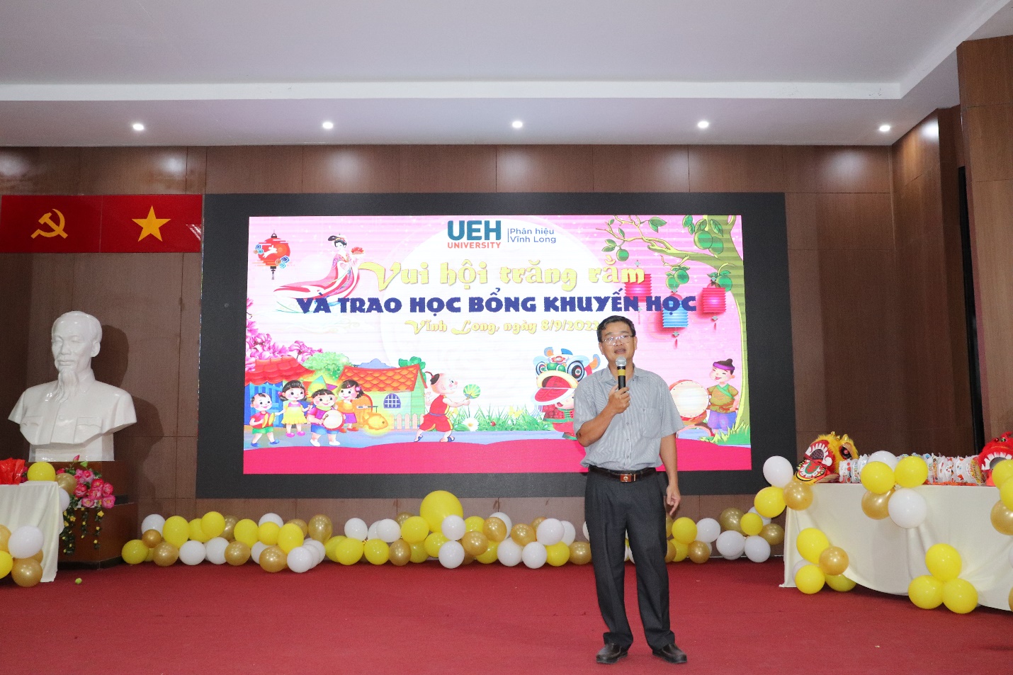 Tối ngày 08/9/2022, Ban Chấp hành Công đoàn cơ sở Phân hiệu Vĩnh Long phối hợp với Đoàn Thanh niên - Hội Sinh viên và Hội Khuyến học Phân hiệu đã tổ chức Chương trình “Vui hội trăng rằm” cho các em thiếu nhi là con của VC-NLĐ tại Phân hiệu Vĩnh Long. Đến với đêm hội, có sự tham dự của ThS. Nguyễn Thị Thý Liễu - Bí thư Đảng ủy bộ phận, Phó Giám đốc thường trực, Chủ tịch Hội khuyến học Phân hiệu; ThS. Nguyễn Đức Vinh - Phó Giám đốc, Chủ tịch Công đoàn Phân hiệu, ThS. Hồ Thiện Quyền - Phó Giám đốc Phân hiệu, cùng với đại diện BCH Công đoàn, BCH Hội khuyến học, toàn thể công đoàn viên và đặc biệt là sự có mặt của 50 cháu thiếu nhi là con của VC-NLĐ tại Phân hiệu.
