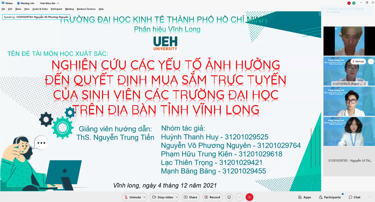 Giải B: “Nghiên cứu các yếu tố ảnh hưởng đến quyết định mua sắm trực tuyến của sinh viên các trường Đại học trên địa bàn tỉnh Vĩnh Long”