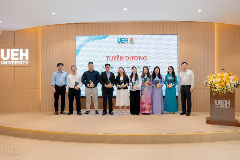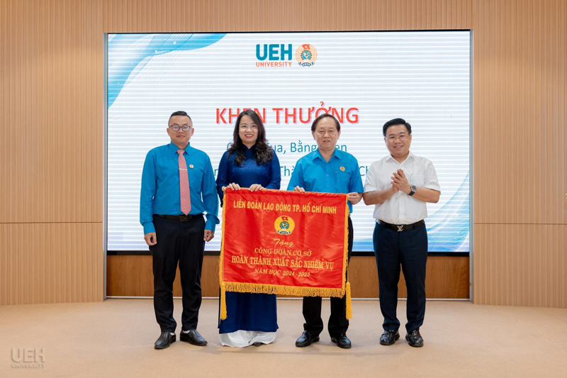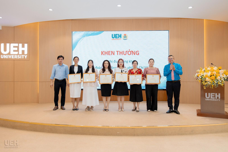 - Khen thưởng của Liên đoàn Lao động Thành phố năm học 2024 - 2025: Công đoàn UEH nhận Cờ thi đua Hoàn thành xuất sắc nhiệm vụ; 06 tập thể và 19 cá nhân tiêu biểu nhận Bằng khen đạt thành tích xuất sắc trong phong trào thi đua lao động giỏi và xây dựng tổ chức Công đoàn vững mạnh.