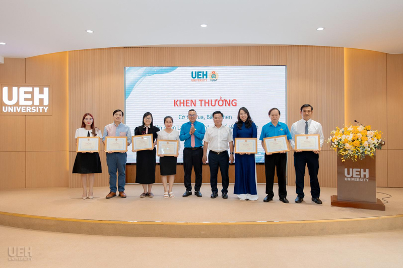 Trong khuôn khổ Hội nghị, Công đoàn UEH đã tiến hành trao tặng các hình thức khen thưởng, danh hiệu thi đua và giải thưởng cho các tập thể và cá nhân đoàn viên công đoàn: