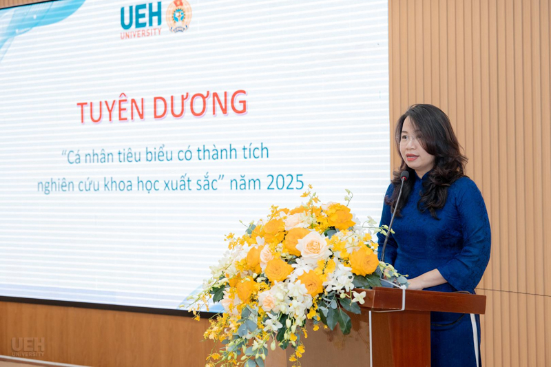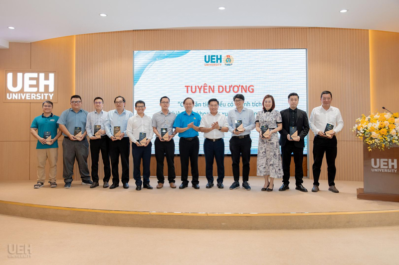 Lãnh đạo UEH và Ban Thường vụ Công đoàn UEH trao biểu trưng tuyên dương cá nhân tiêu biểu có thành tích nghiên cứu khoa học xuất sắc năm 2025