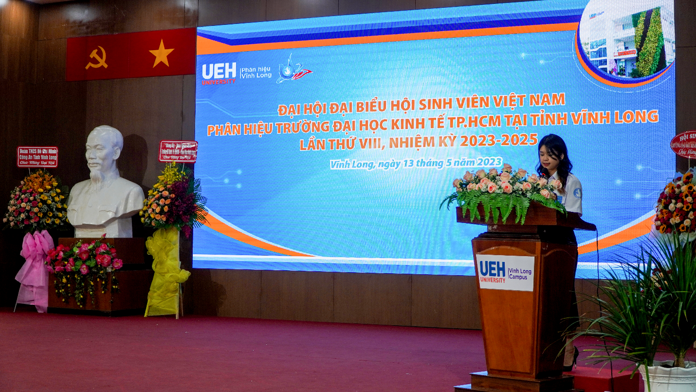 Đại hội đại biểu hội sinh viên Phân hiệu Vĩnh Long lần VIII, nhiệm kỳ 2023-2025 diễn ra trong bối cảnh UEH đang thực hiện chiến lược về tái cấu trúc, hình thành Đại học đa ngành và bền vững. Vì vậy, công tác Hội và Phong trào sinh viên thời gian tới phải không ngừng đổi mới, tạo môi trường hoạt động năng động, sáng tạo, hỗ trợ cho sinh viên học tập, nghiên cứu, khởi nghiệp, hội nhập quốc tế và kết nối cộng đồng theo đúng tinh thần khẩu hiệu hành động “Sinh viên UEH - Tư duy đổi mới - Kết nối cộng đồng - Hành động bền vững - Hướng tới công dân toàn cầu”. Hy vọng các đồng chí trong nhiệm kỳ mới sẽ phát huy được vai trò của mình đưa công tác Hội và phong trào sinh viên tại UEH - Phân hiệu Vĩnh Long ngày càng phát triển mạnh mẽ, đột phá và bền vững.