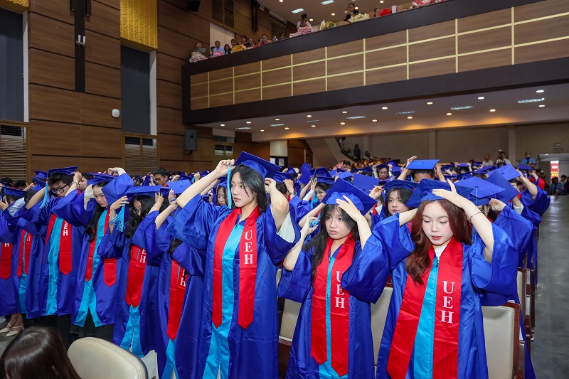 Đại học Kinh tế Thành phố Hồ Chí Minh chúc mừng các Tân Tiến sĩ, Thạc sĩ, Cử nhân chính thức tốt nghiệp! Đây là cột mốc khép lại hành trình học tập và rèn luyện đầy nỗ lực của các bạn, đồng thời cũng mở ra những chân trời mới, cơ hội mới để tiếp tục nghiên cứu, cống hiến và phụng sự tri thức cho xã hội, cộng đồng. Với nền tảng chuyên môn được bồi đắp tại mái trường UEH, các Tân Tiến sĩ, Thạc sĩ và Cử nhân tại UEH sẵn sàng đặt chân vào thị trường lao động, bước ra thế giới, sẵn sàng dấn thân hội nhập toàn cầu./.