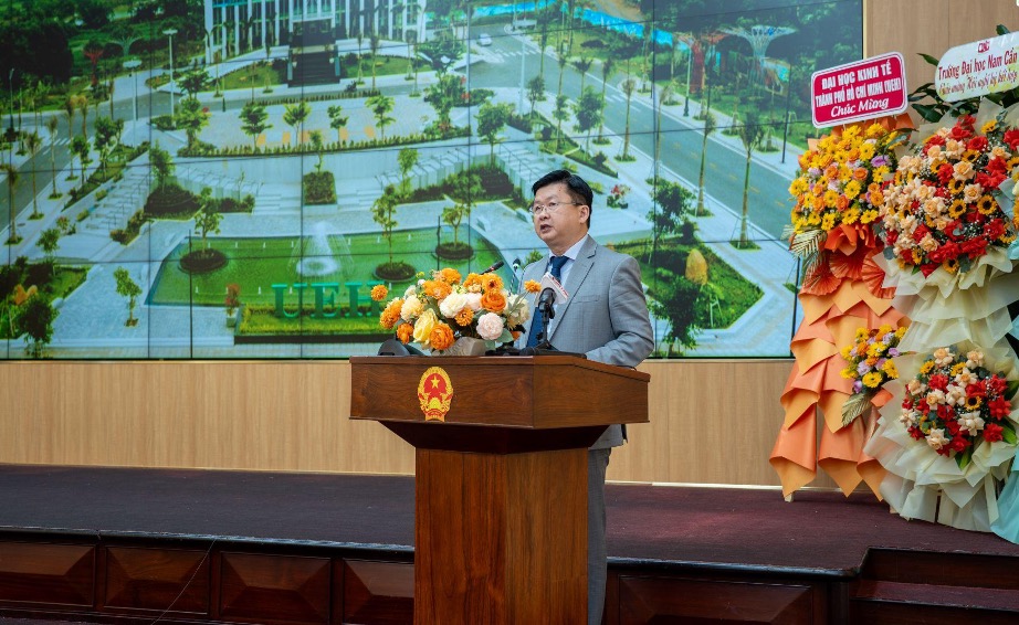 Phát biểu tại lễ ký kết, TS. Đinh Công Khải – Phó Giám đốc UEH khẳng định Quyết định 1146/QĐ-TTg của Thủ tướng Chính phủ về việc chuyển từ Trường Đại học Kinh tế Thành phố Hồ Chí Minh sang Đại học Kinh tế Thành phố Hồ Chí Minh là dấu mốc quan trọng, tạo đà để UEH phát huy sức mạnh của các phân hiệu, trường thành viên, các viện nghiên cứu và mạng lưới chuyên gia để phục vụ tốt nhất cho nhu cầu phát triển của địa phương.