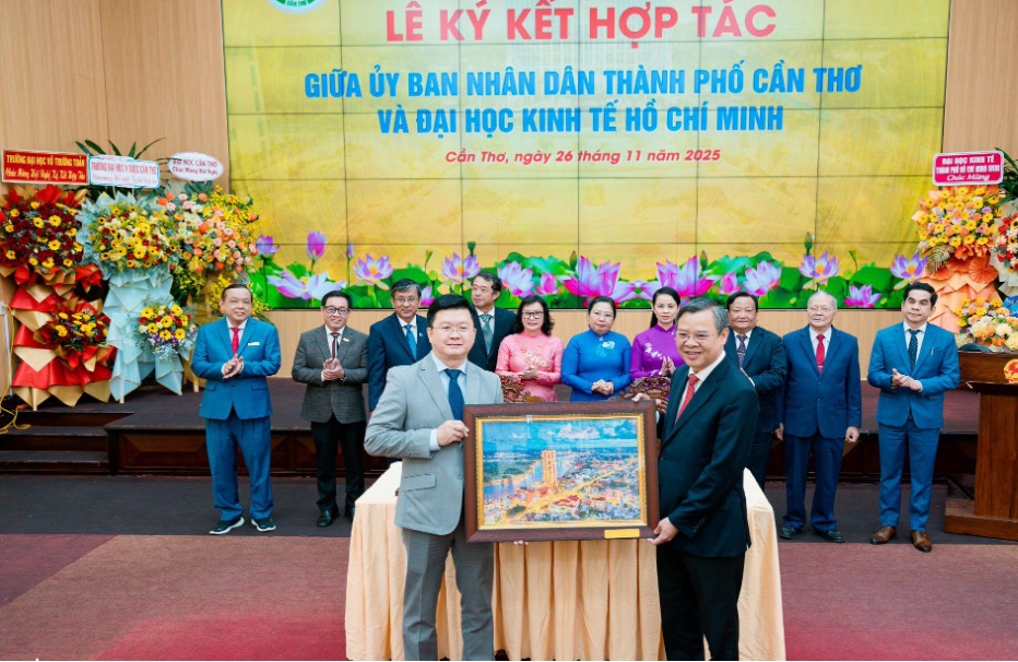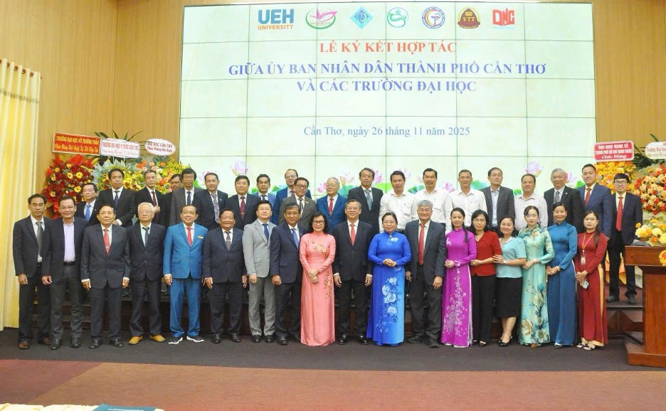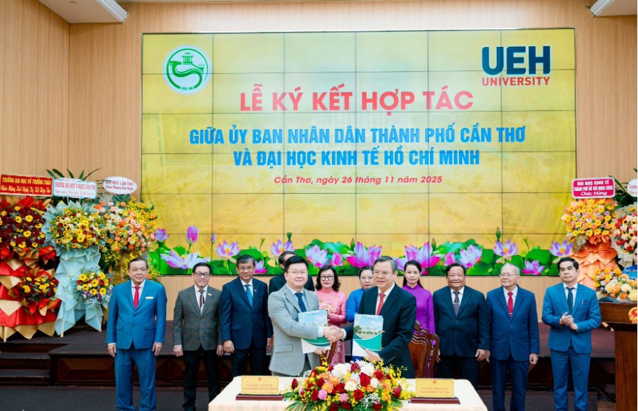 Ngày 26/11/2025, Đại học Kinh tế Thành phố Hồ Chí Minh (UEH) và Ủy ban nhân dân (UBND) Thành phố Cần Thơ đã chính thức ký kết Thỏa thuận hợp tác (MOU) giai đoạn 2025-2030; đánh dấu bước tiến quan trọng trong chiến lược hợp tác hai bên, hướng tới nâng cao chất lượng nhân lực, nghiên cứu khoa học, hoạch định chính sách nhằm phát triển đô thị thông minh - bền vững cho khu vực Đồng bằng sông Cửu Long.