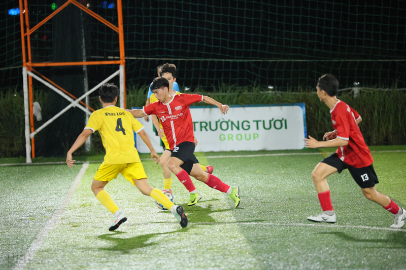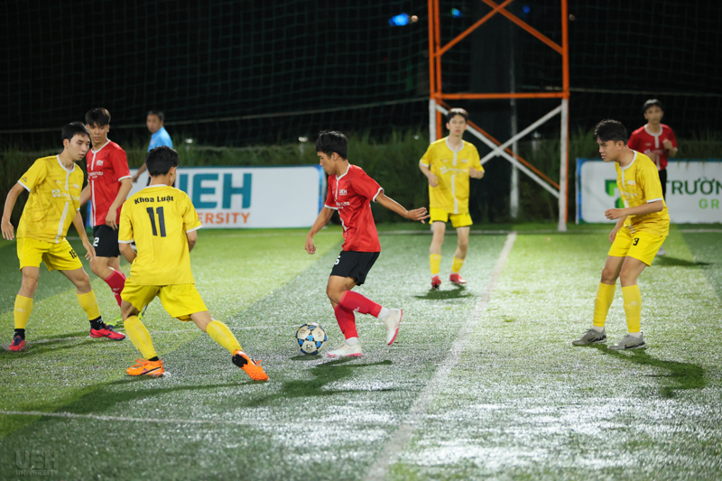 Trong trận đấu với Khoa Luật, Khoa Quản trị thể hiện sức mạnh vượt trội. Trần Nguyễn Trọng Hiếu mở tỷ số ở phút 20, ngay sau đó Trần Văn Tấn Đạt và Nguyễn Xuân Thiện tiếp tục lập công, giúp Quản trị dẫn 3-0 khi hiệp một khép lại. Sang hiệp hai, Tấn Đạt tỏa sáng với thêm hai bàn thắng, nâng tỷ số lên 5-0. Dù Khoa Luật đã rất nỗ lực và có hai bàn rút ngắn nhờ công của Dương Văn Nhật và Trần Quốc Trung, trận đấu vẫn khép lại với chiến thắng 5-2 nghiêng về Khoa Quản trị.