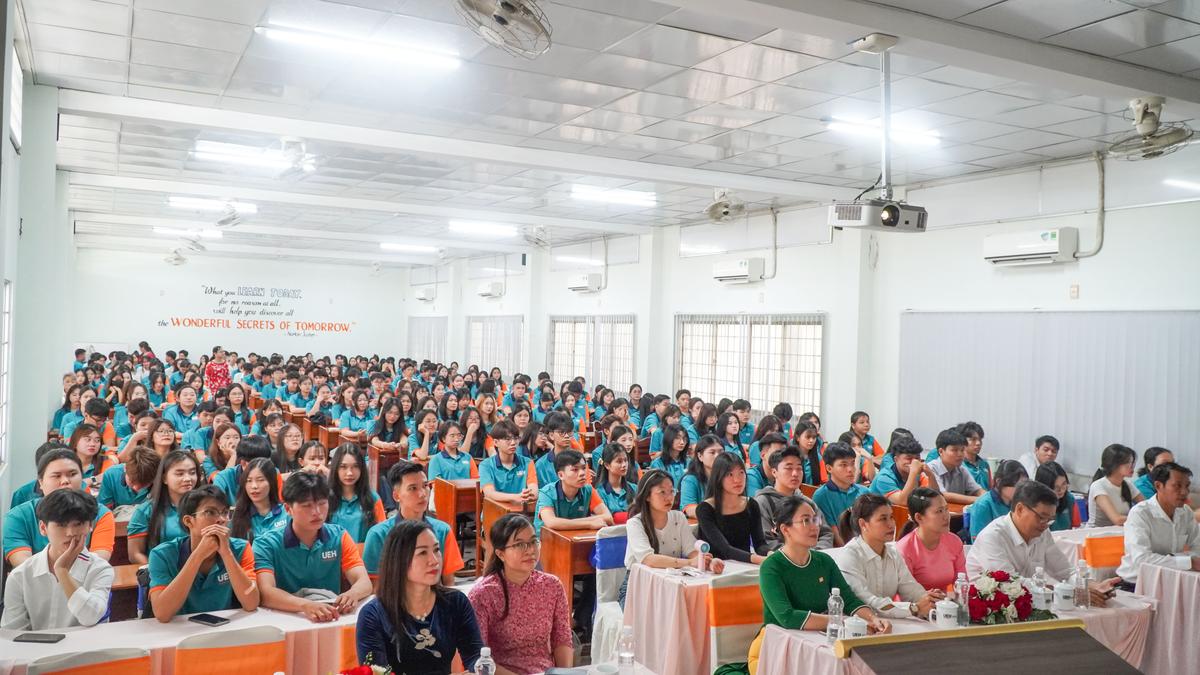 Toàn cảnh Lễ khai giảng Khóa 51 Đại học chính quy tại Hội trường B3.1, UEH Mekong