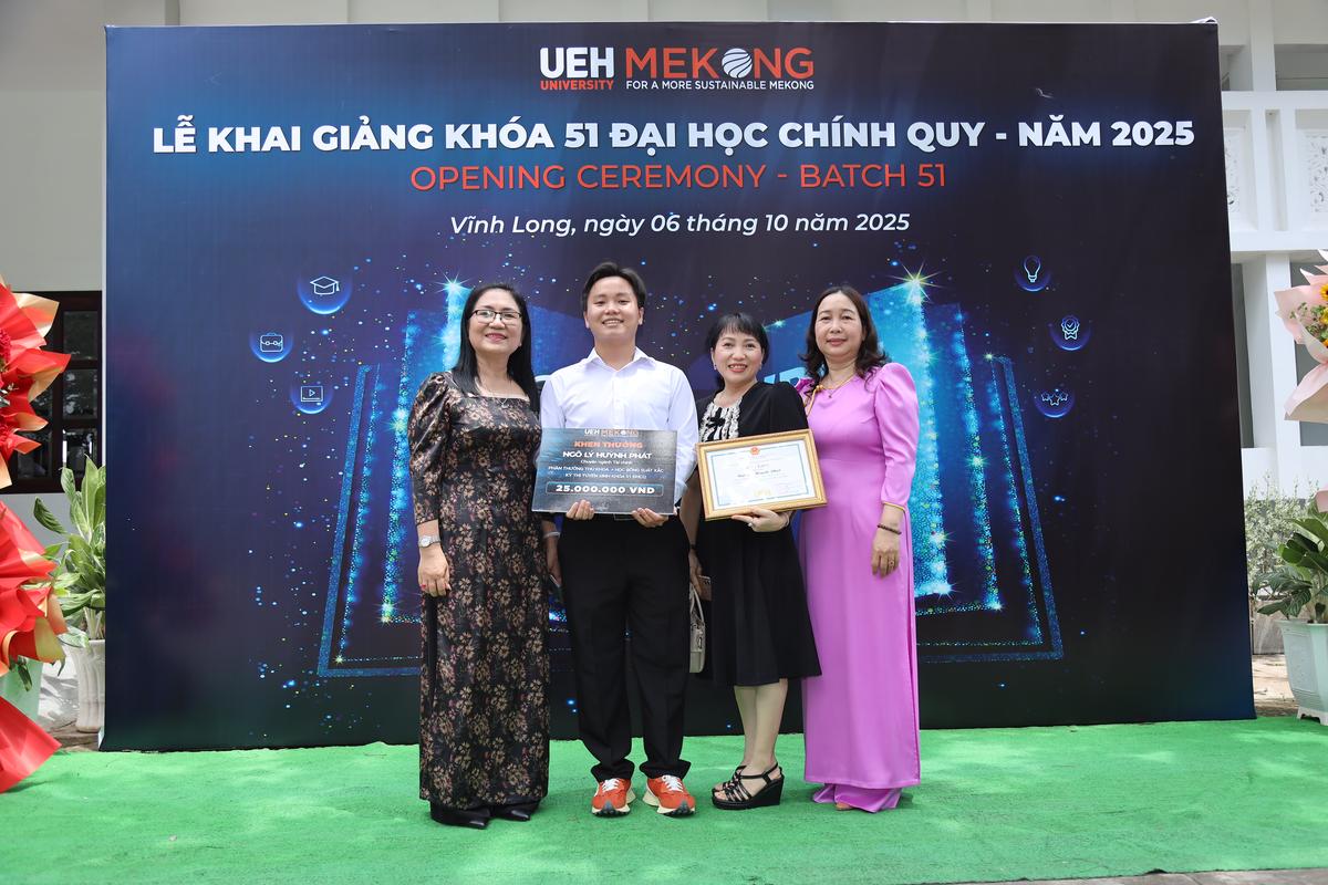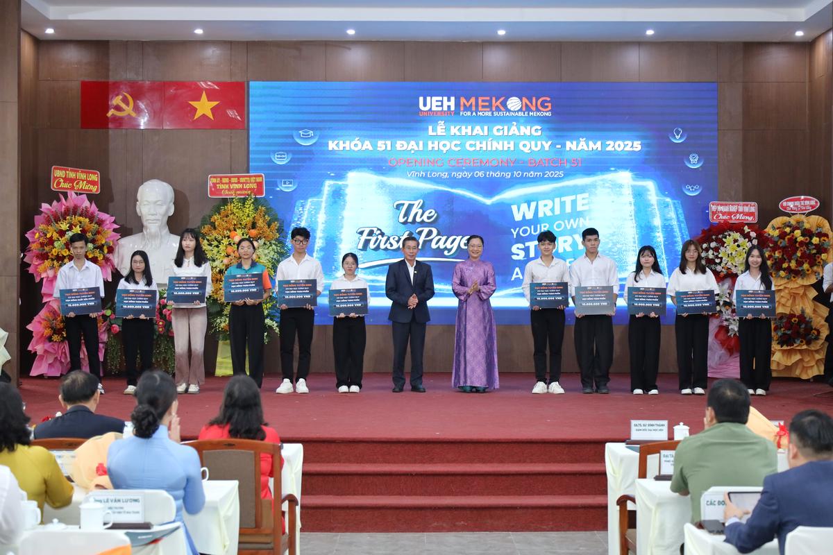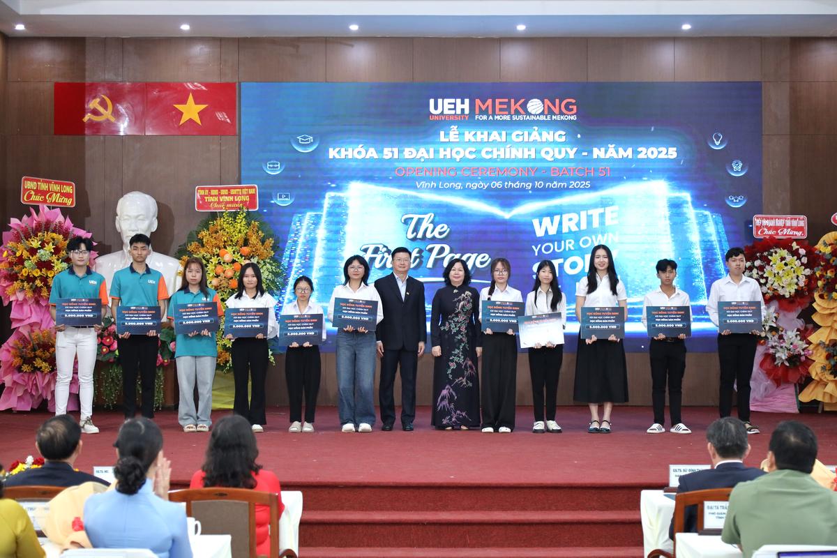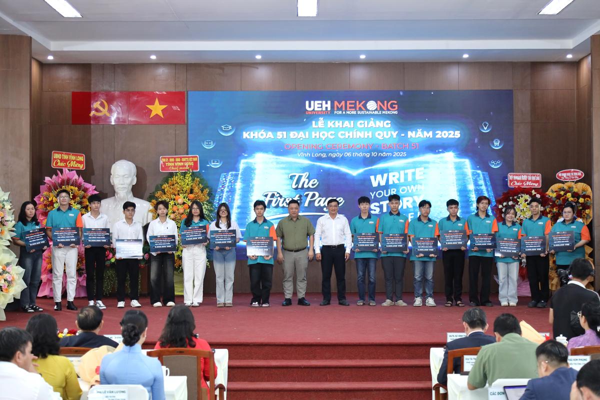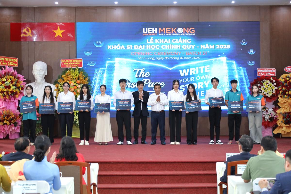 Và trong năm nay, UEH Mekong đã trao 730 triệu đồng để khen thưởng Thủ khoa, Á khoa và trao học bổng tuyển sinh, học bổng hỗ trợ học tập cho các tân sinh viên của Khóa 51 - như một sự ghi nhận xứng đáng cho 12 năm nỗ lực bền bỉ, để hôm nay các bạn chính thức trở thành những UEHer đầy bản lĩnh.