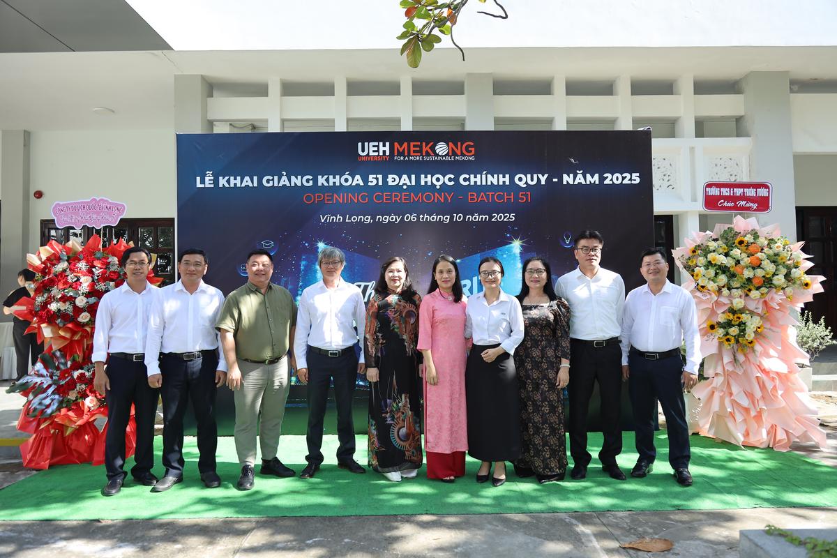 Về phía UEH, có sự tham dự của: GS.TS. Sử Đình Thành - Giám đốc UEH Nhiệm kỳ 2020-2025, GS.TS. Nguyễn Đông Phong - Nguyên Bí thư Đảng ủy - Chủ tịch Hội đồng đại học nhiệm kỳ 2020-2025, PGS.TS. Bùi Quang Hùng - Phó Bí thư Đảng ủy - Phó Giám đốc phụ trách UEH, kiêm Giám đốc UEH Mekong, TS. Đinh Công Khải - Phó Giám đốc UEH, PGS.TS. Phan Thị Bích Nguyệt - Chủ tịch Hội đồng Tư vấn chiến lược và chính sách, PGS.TS. Phạm Khánh Nam - Hiệu trưởng Trường Kinh tế, Luật và Quản lý nhà nước UEH, PGS.TS. Trần Hà Minh Quân - Hiệu trưởng Trường Tài năng UEH, TS. Trần Anh Hoa - Phó Hiệu trưởng Trường Kinh doanh UEH, TS. Thái Kim Phụng, Phó Hiệu trưởng Trường Công nghệ và Thiết kế UEH, TS. Đinh Thị Thu Hồng - Phó trưởng Ban Thường trực Ban đào tạo, PGS.TS. Nguyễn Phong Nguyên - Phó Trưởng ban thường trực Ban Nghiên cứu - Phát triển và Gắn kết toàn cầu, ThS. Trần Hoàng Tâm - Phó Trưởng ban thường trực - Ban Tài chính - Kế hoạch đầu tư, ThS. Lê Đồng Dư - Phó Chánh văn phòng thường trực Văn phòng Đại học, ThS. Phan Ngọc Anh - Phó trưởng ban Ban Truyền thông và Phát triển đối tác, PGS.TS. Diệp Gia Luật - Trưởng Khoa Tài chính Công, Trường Kinh tế, Luật và Quản lý nhà nước UEH, ThS. Đoàn Đức Minh - Phó trưởng Khoa Du lịch, Trường Kinh doanh UEH, Ông Nguyễn Hữu Duy Kha - Phó Giám đốc Dự án UEH Phân hiệu Nha Trang, Bà Lê Thị Mỹ Bình - Phó Giám đốc Đối ngoại UEH Phân hiệu Nha Trang, TS. Nguyễn Thị Thý Liễu - Phó Giám đốc thường trực UEH Mekong, ThS. Hồ Thiện Quyền - Phó Giám đốc, ThS. Nguyễn Đức Vinh - Phó Giám đốc; Quý Thầy, Cô là Trưởng, Phó các Khoa, Bộ môn tại Cơ sở chính và đặc biệt là sự hiện diện của Quý phụ huynh và hơn 600 Tân Sinh viên khóa 51 Đại học chính quy UEH Mekong tham dự.