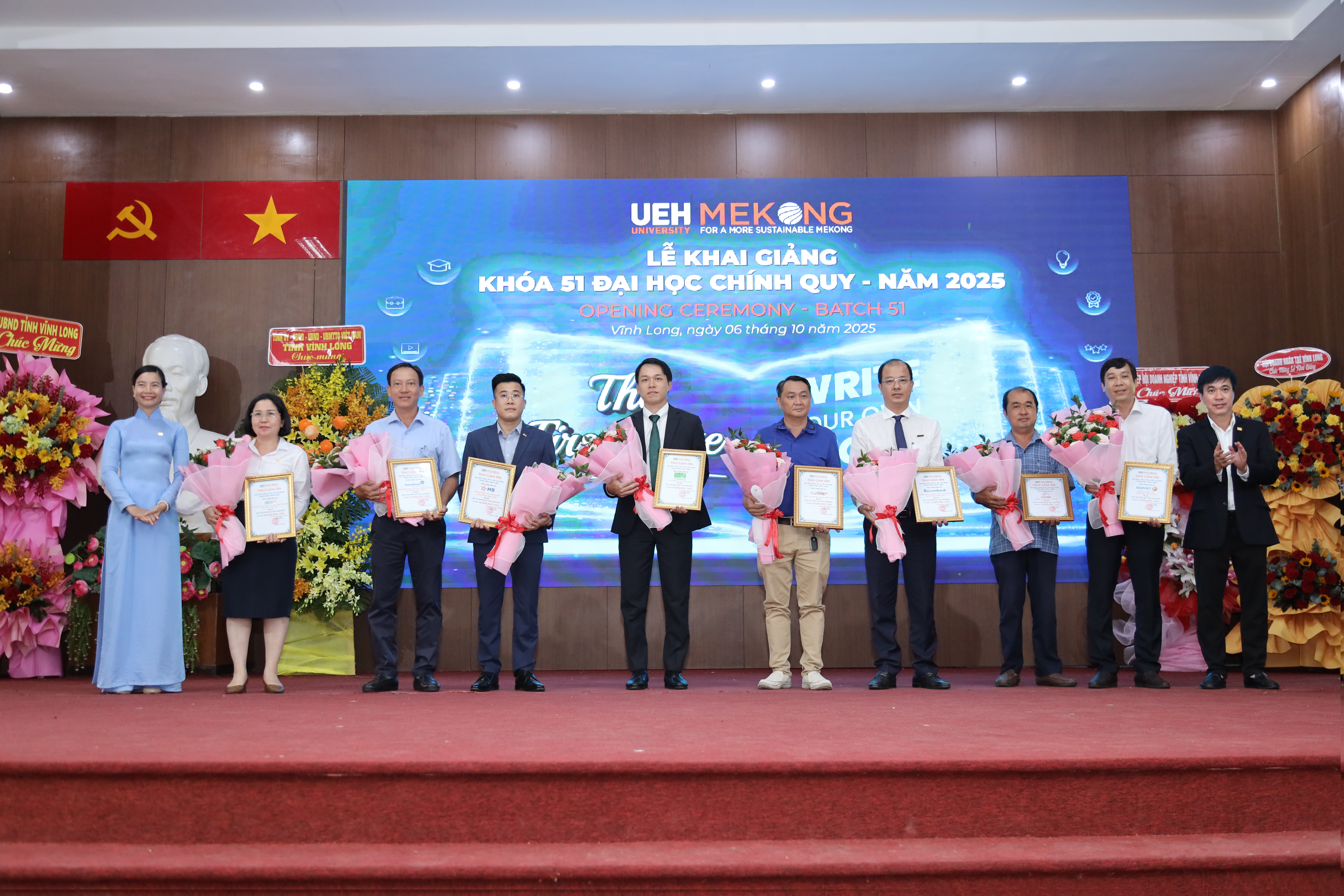 Ban Giám đốc UEH Mekong tặng hoa tri ân các đơn vị tài trợ học bổng dành cho Tân sinh viên K51