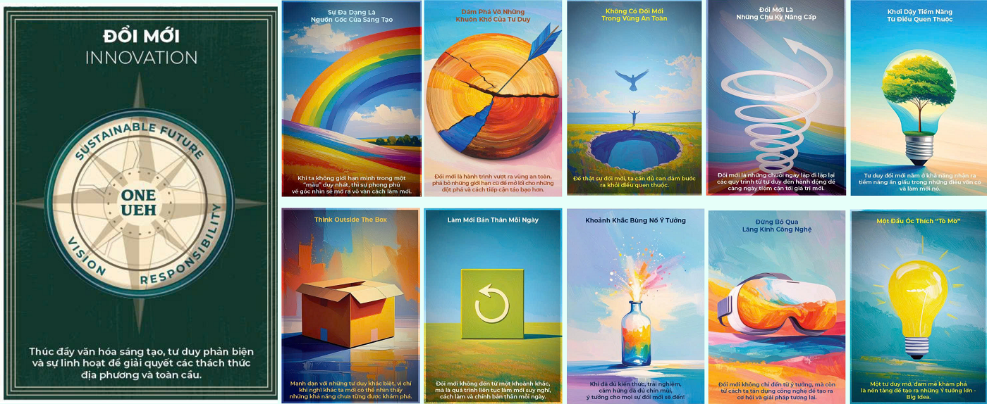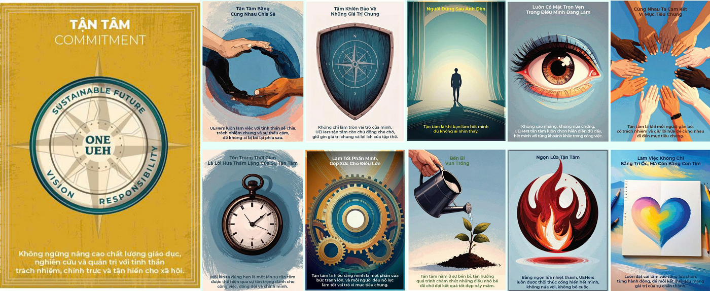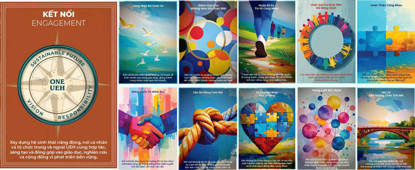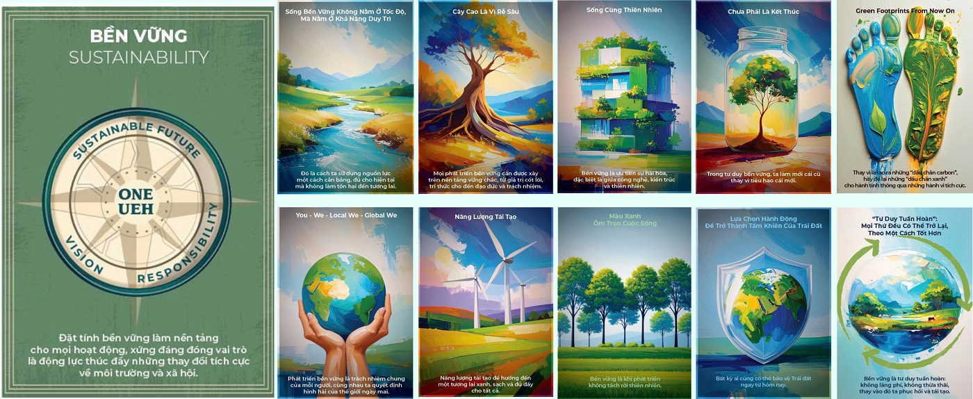 Đó là Rừng xanh - Bền vững: Đặt tính bền vững làm nền tảng cho mọi hoạt động, đảm bảo rằng UEH đóng vai trò là động lực thúc đẩy những thay đổi tích cực về môi trường và xã hội