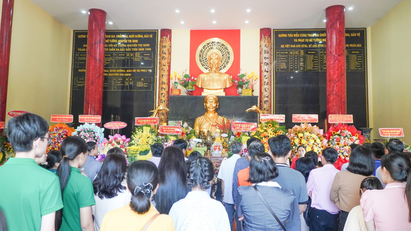 Sau khi dâng hoa, dâng hương, đoàn đã tham quan phòng trưng bày hình ảnh, tư liệu, hiện vật minh họa và nghe thuyết minh về cuộc đời cũng như sự nghiệp cách mạng của Nữ tướng. Phòng trưng bày hiện đang bảo tồn rất nhiều hiện vật quý giá như áo bà ba, khăn rằn, áo gió, võng, bút, mắt kính, sổ tay… mà bà đã từng sử dụng trong suốt quá trình hoạt động cách mạng.