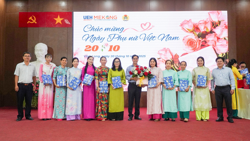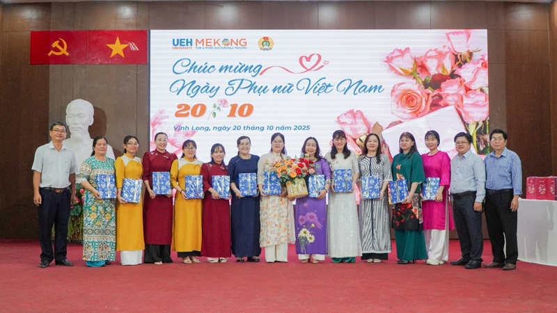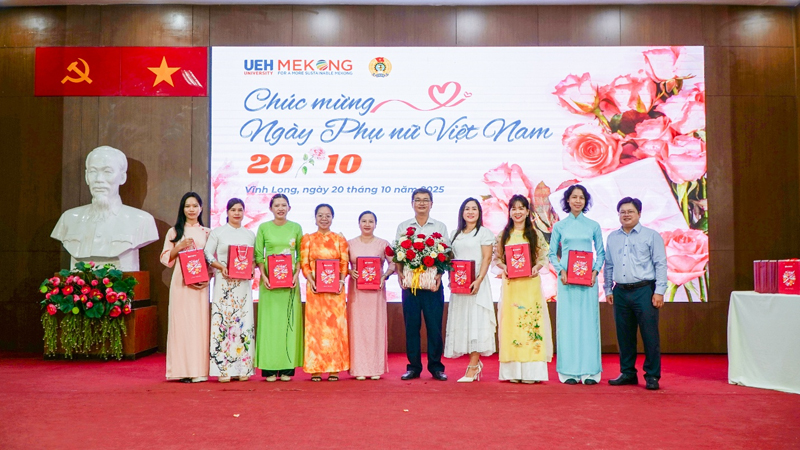 Từ ngày 15/10 đến ngày 20/10/2025, Công đoàn cơ sở UEH Mekong đã phối hợp với Ban Giám đốc Phân hiệu tổ chức các hoạt động ý nghĩa chào mừng 95 năm Ngày thành lập Hội Liên hiệp Phụ nữ Việt Nam (20/10/1930 - 20/10/2025), gồm: về nguồn - viếng Khu tưởng niệm nữ tướng Nguyễn Thị Định; tham quan, dã ngoại; hưởng ứng “Tuần lễ Áo dài, Áo bà ba” năm 2025 và họp mặt tặng quà 20/10 cho nữ viên chức, người lao động. Các hoạt động được tổ chức nhằm ôn lại truyền thống vẻ vang của người phụ nữ Việt Nam qua các thời kỳ; tạo không khí vui tươi, gắn kết trong VC-NLĐ đặc biệt là ghi nhận, tôn vinh những đóng góp của nữ VC-NLĐ cho quá trình phát triển của Phân hiệu.