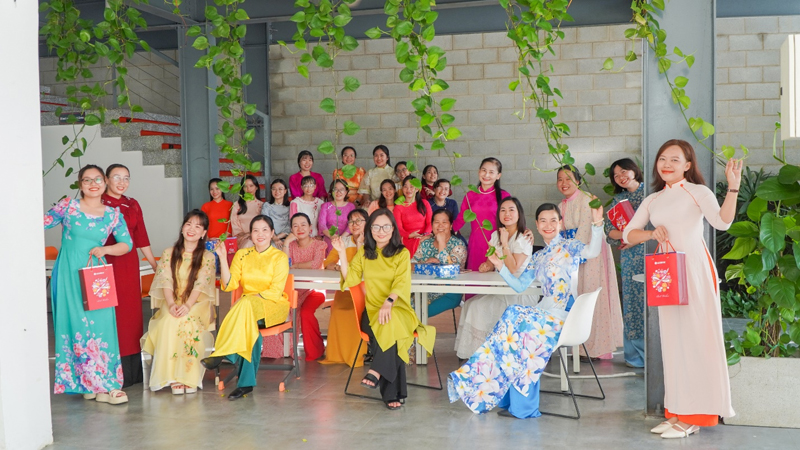 Nữ VC-NLĐ chụp ảnh lưu niệm, hưởng ứng “Tuần lễ Áo dài, Áo bà ba” năm 2025