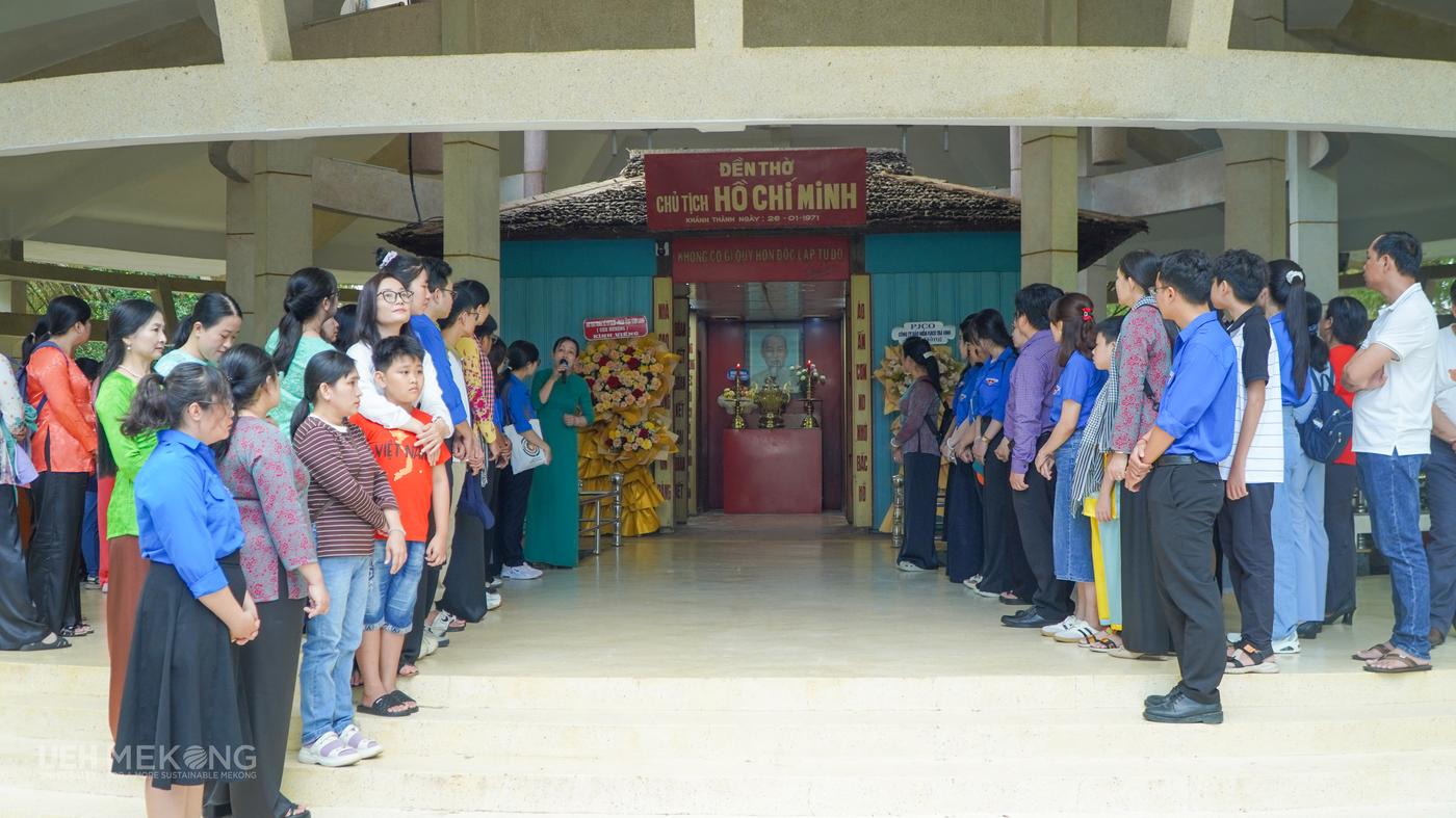 Đoàn viên, viên chức, người lao động UEH Mekong về nguồn tại Khu di tích lịch sử, văn hóa cấp quốc gia Đền thờ Chủ tịch Hồ Chí Minh (Phường Trà Vinh, tỉnh Vĩnh Long)
