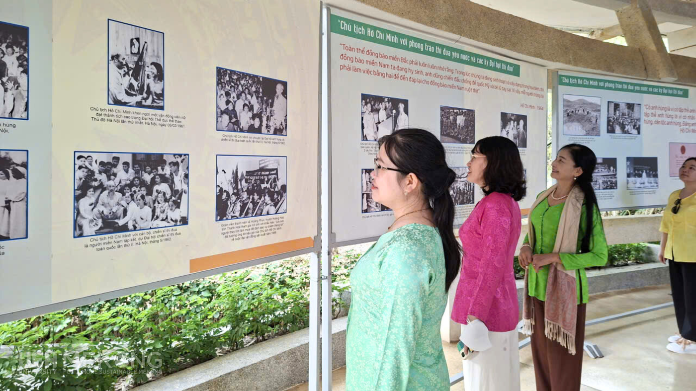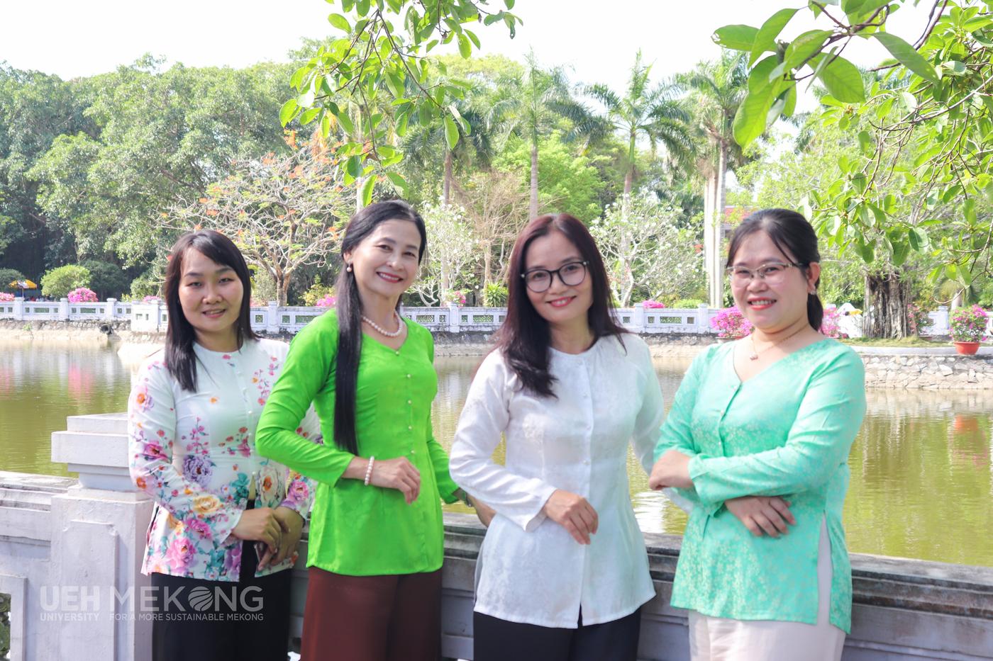 - Ngày 01/3/2026, Nữ VC-NLĐ đã mặc trang phục Áo bà ba tham gia hoạt động về nguồn tại Đền thờ Chủ tịch Hồ Chí Minh và hoạt động tham quan, dã ngoại tại Khu du lịch Huỳnh Kha và Khu di tích danh thắng quốc gia Ao Bà Om. Hình ảnh nữ VC-NLĐ UEH Mekong trong tà áo bà ba giản dị giữa không gian trang nghiêm của khu di tích đã tôn lên vẻ đẹp mộc mạc, gần gũi của người phụ nữ Nam Bộ. Trang phục truyền thống không chỉ thể hiện nét duyên dáng, nền nã mà còn thể hiện sự trân trọng đối với các giá trị văn hóa, góp phần gìn giữ và lan tỏa bản sắc dân tộc.