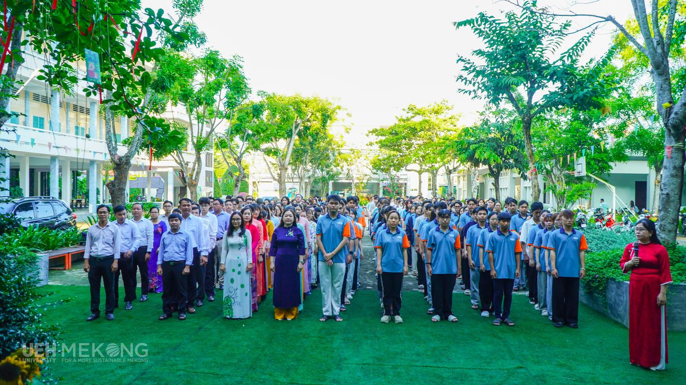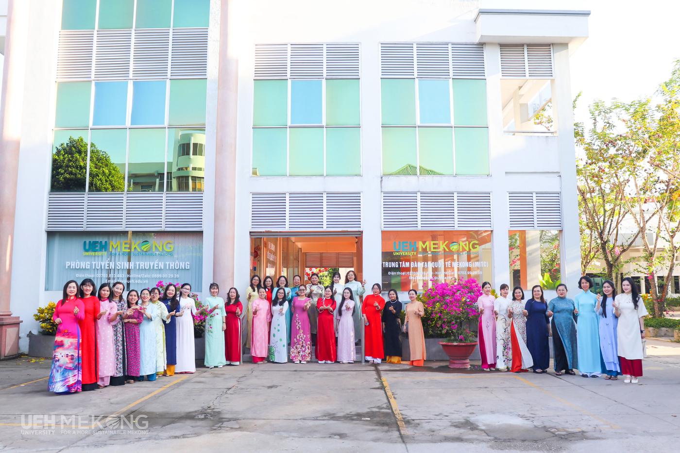 - Sáng thứ Hai, ngày 02/3/2026, trong không khí trang nghiêm của lễ chào cờ đầu tuần, nữ VC-NLĐ UEH Mekong đã đồng loạt mặc áo dài truyền thống và chụp ảnh lưu niệm hưởng ứng “Tuần lễ Áo dài” năm 2026. Những tà áo dài thướt tha với sắc màu trang nhã đã làm bừng sáng khuôn viên UEH Mekong, tôn lên vẻ đẹp dịu dàng, thanh lịch của nữ viên chức, người lao động. Hoạt động không chỉ góp phần tôn vinh giá trị của trang phục truyền thống mà còn lan tỏa hình ảnh người phụ nữ hiện đại - bản lĩnh, trí tuệ và nhân văn, đồng thời thể hiện tinh thần đoàn kết và nét đẹp chuyên nghiệp của tập thể nữ VC-NLĐ UEH Mekong.