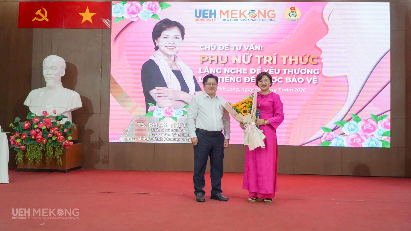 Bên cạnh các hoạt động ý nghĩa chào mừng 116 năm Ngày Quốc tế Phụ nữ, ngày 4/3/2026, đoàn viên, VC-NLĐ và sinh viên UEH Mekong đã được tham gia Chương trình Talkshow tư vấn tâm lý, sức khỏe tinh thần với chủ đề “Phụ nữ trí thức: Lắng nghe để yêu thương, lên tiếng để được bảo vệ”.