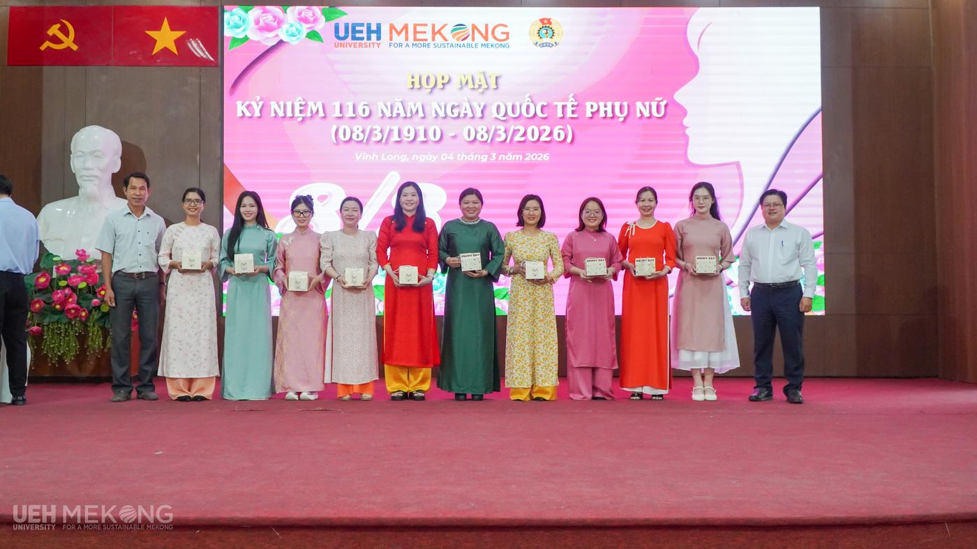 Chuỗi hoạt động kỷ niệm Ngày Quốc tế Phụ nữ 8/3 năm 2026 tại UEH Mekong đã diễn ra thiết thực, ý nghĩa và ấm áp nghĩa tình. Các hoạt động không chỉ mang lại những phút giây vui tươi, gắn kết mà còn góp phần nâng cao nhận thức, khơi dậy niềm tự hào truyền thống, tạo động lực để nữ VC-NLĐ tiếp tục phát huy năng lực, bản lĩnh và trí tuệ, đóng góp tích cực vào sự phát triển bền vững của UEH Mekong trong giai đoạn mới.