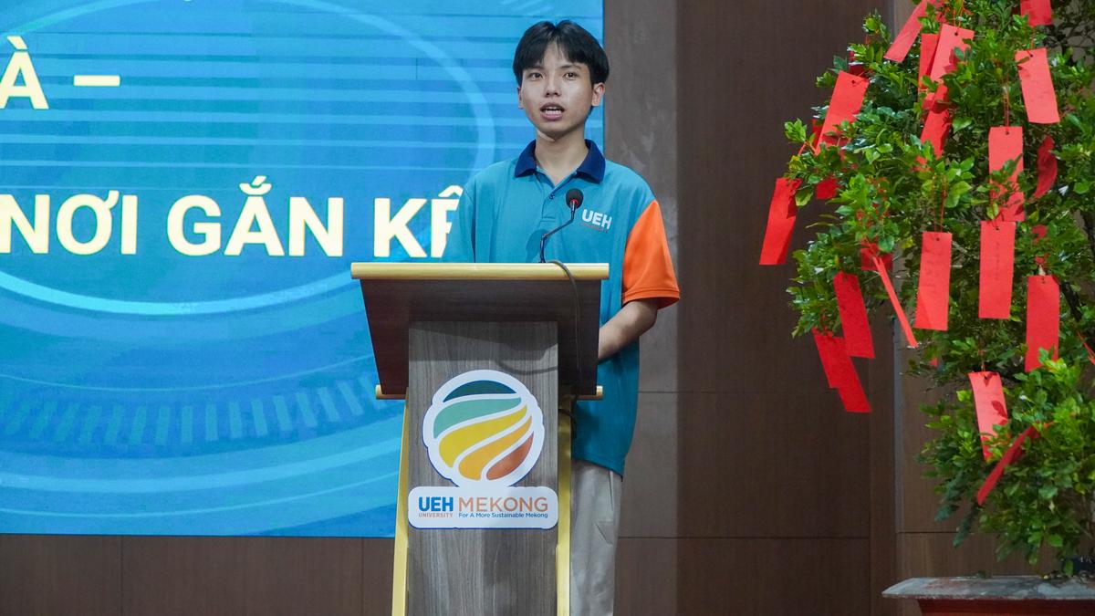 Phát biểu chào mừng tân sinh viên, ThS. Hồ Thiện Quyền - Phó Giám đốc UEH Mekong nhấn mạnh: “Chương trình Chào đón tân sinh viên tại KTX năm nay là chương trình chào đón tân sinh viên lần đầu tiên được tổ chức trong khu nội trú, nhằm tạo điều kiện để sinh viên nội trú giao lưu, gắn kết, chia sẻ kinh nghiệm sống và sinh hoạt trong khu nội trú. Đồng thời, trong Chương trình này, Ban Quản lý Ký túc xá (QLKTX) sẽ triển khai đến các bạn tân sinh viên Mô hình sinh viên tự quản - một mô hình được áp dụng thống nhất từ Ký túc xá Cơ sở chính tới Ký túc xá UEH Mekong và triển khai Kế hoạch các hoạt động phong trào trong KTX năm học 2025-2026. Qua chương trình, Ban Quản lý KTX cũng mong muốn nhận thêm các ý kiến đóng góp từ các sinh viên nội trú để các phong trào tại KTX được đa dạng và phong phú hơn”.