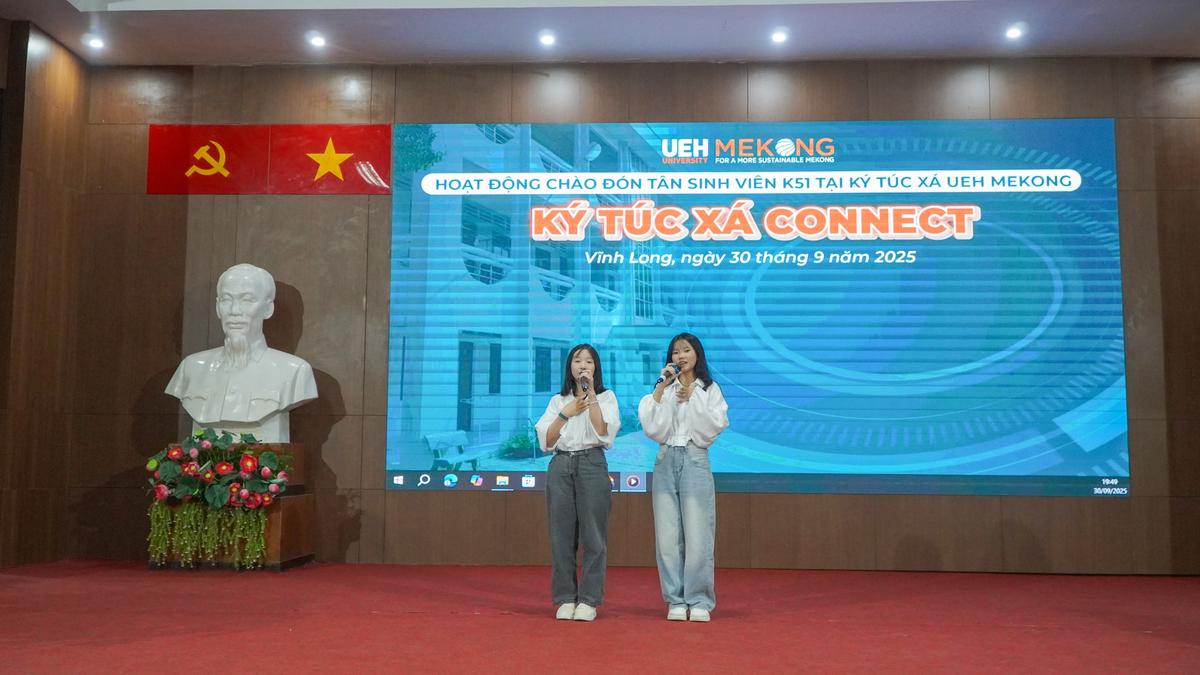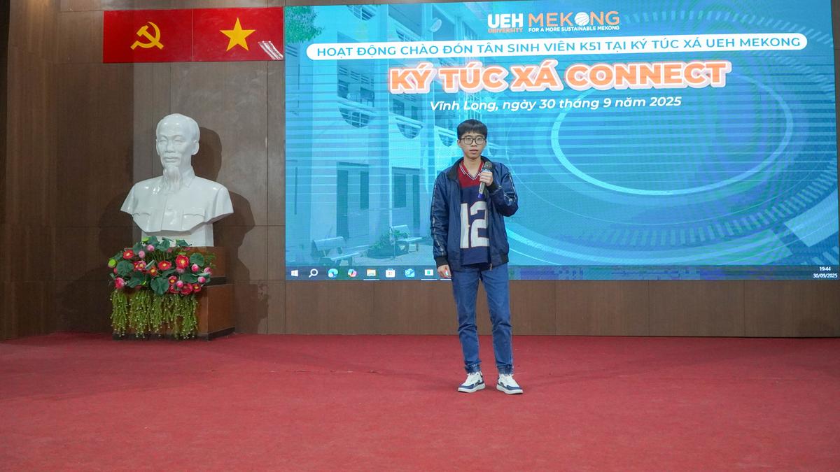 Tối ngày 30/9/2025, tại Hội trường A, Ban Quản lý Ký túc xá UEH Mekong tổ chức Chương trình chào đón Tân sinh viên nội trú K51 Đại học chính quy với chủ đề “Ký túc xá Connect”. Chương trình được tổ chức nhằm chào đón những sinh viên mới K51 Đại học chính quy tham gia vào khu nội trú UEH Mekong, qua đó duy trì và xây dựng một cộng đồng nội trú đoàn kết, văn minh, xóa tan đi mọi khoảng cách lạ lẫm ban đầu của các bạn tân sinh viên.