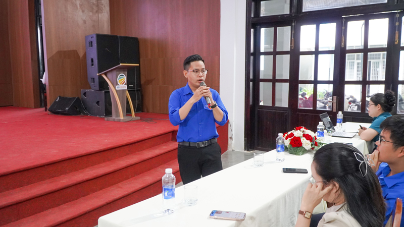 Bạn Võ Tâm Dũng - Ủy viên BCH Đoàn thanh niên UEH, Phó Bí thư Đoàn Khoa Luật, sinh viên Khóa 48 ngành Luật Kinh tế chia sẻ tại Chương trình