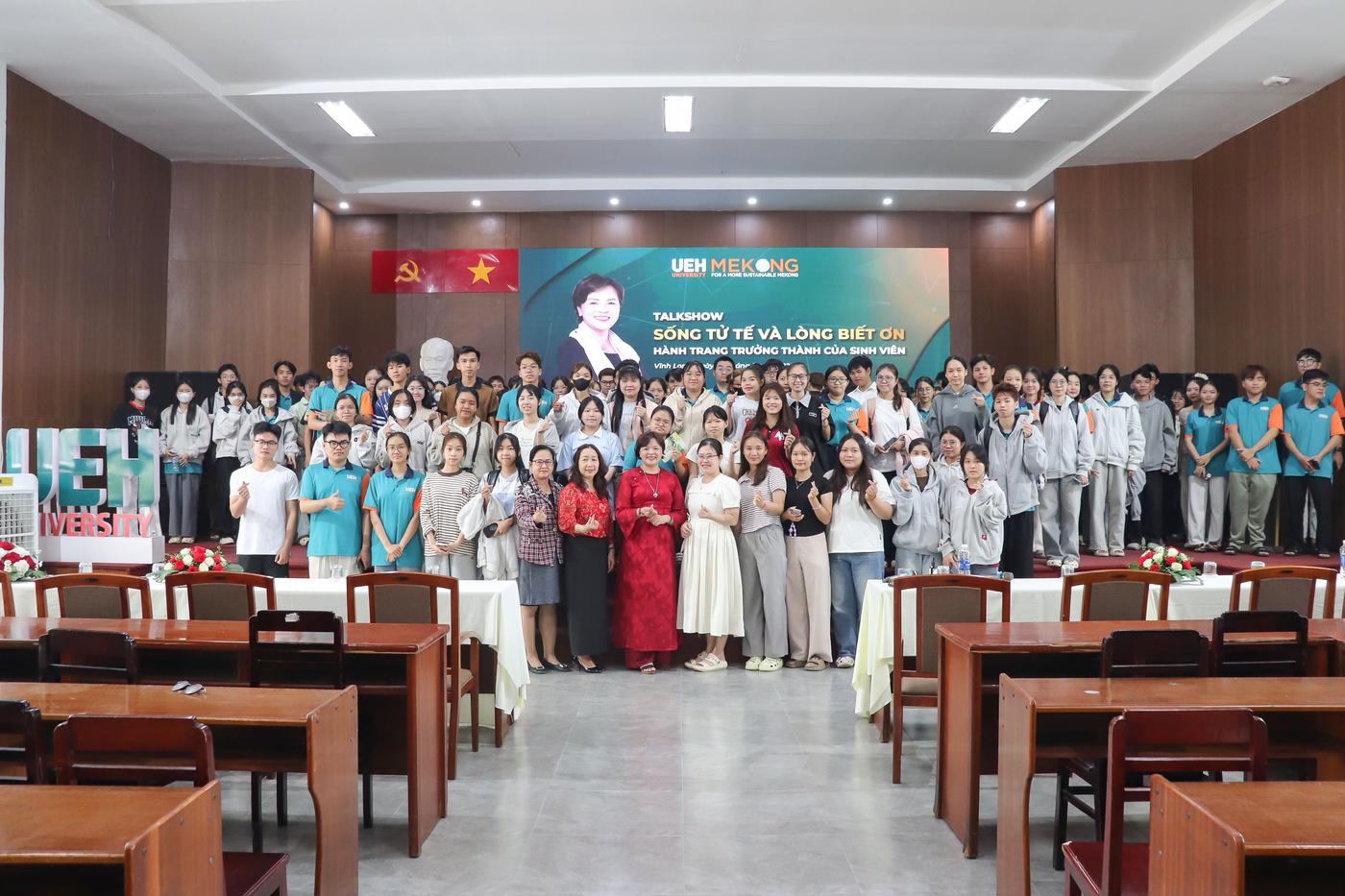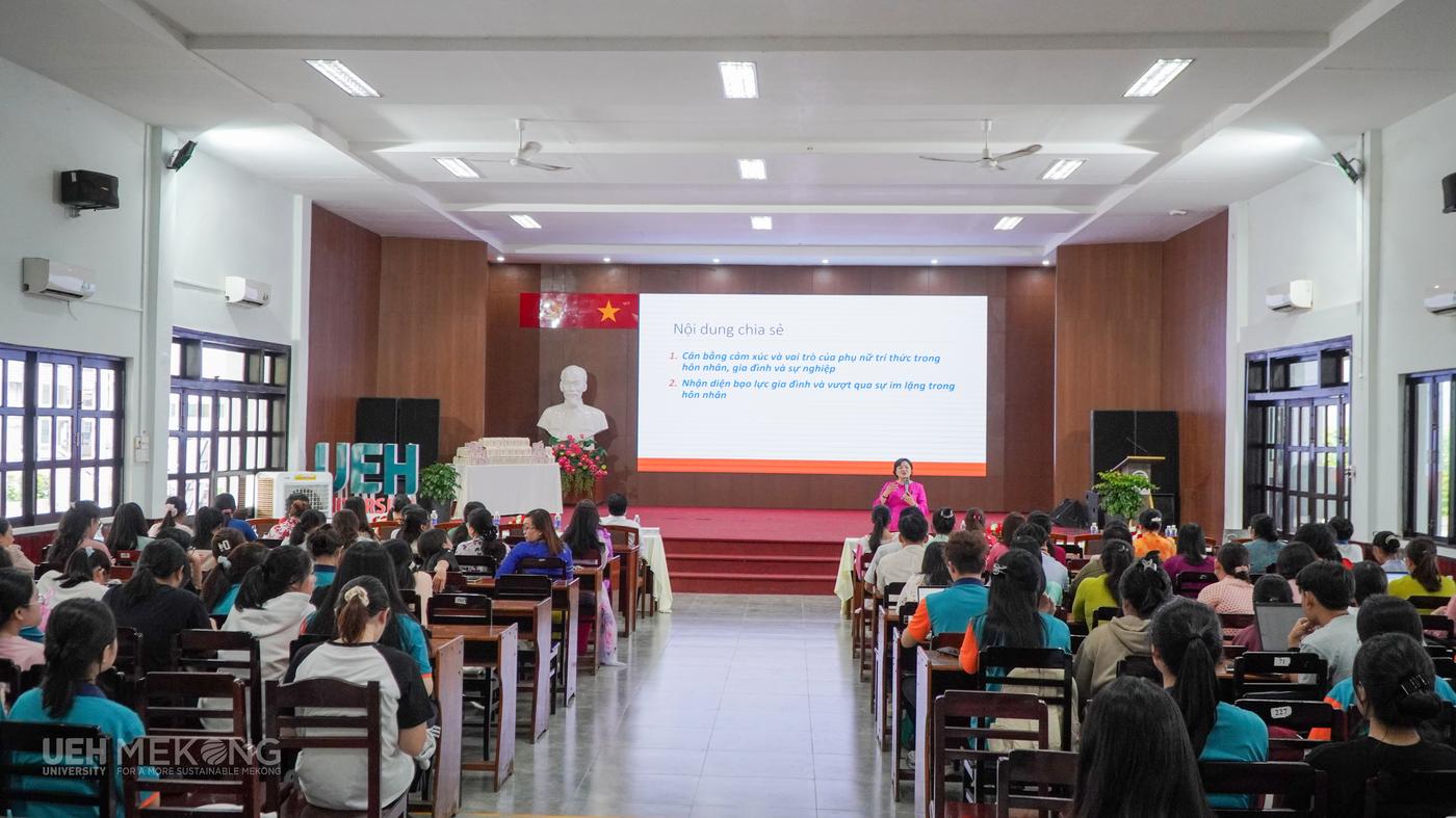 Ngày 04/3/2026, tại Hội trường A, UEH Mekong tổ chức Chương trình tư vấn tâm lý dành cho sinh viên, với chủ đề “Sống tử tế và lòng biết ơn - Hành trang trưởng thành của sinh viên” và chủ đề “Phụ nữ trí thức trong gia đình và sự nghiệp”.