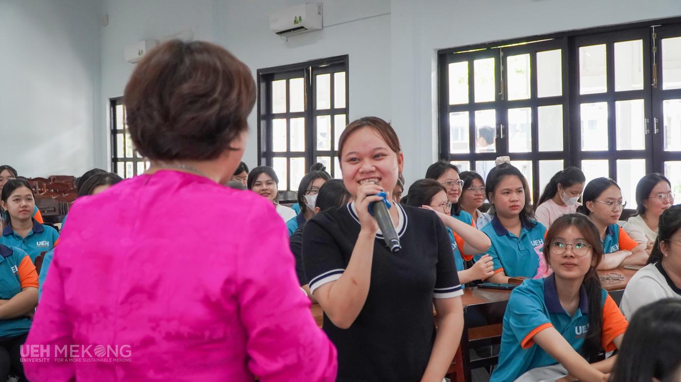 Những chia sẻ sâu sắc và đầy cảm hứng của TS. Phạm Thị Thúy với những góc nhìn về giá trị của lòng biết ơn, sự tử tế và bản lĩnh của người phụ nữ trí thức trong xã hội hiện đại đã giúp sinh viên lĩnh hội những kiến thức và kinh nghiệm quý báu trong cuộc sống. Chắc chắn rằng sau chương trình, sinh viên UEH Mekong sẽ biết cách hoàn thiện bản thân hơn, sống có trách nhiệm, tự tin và vững vàng trên con đường học tập, sự nghiệp và xây dựng một cuộc sống hạnh phúc.